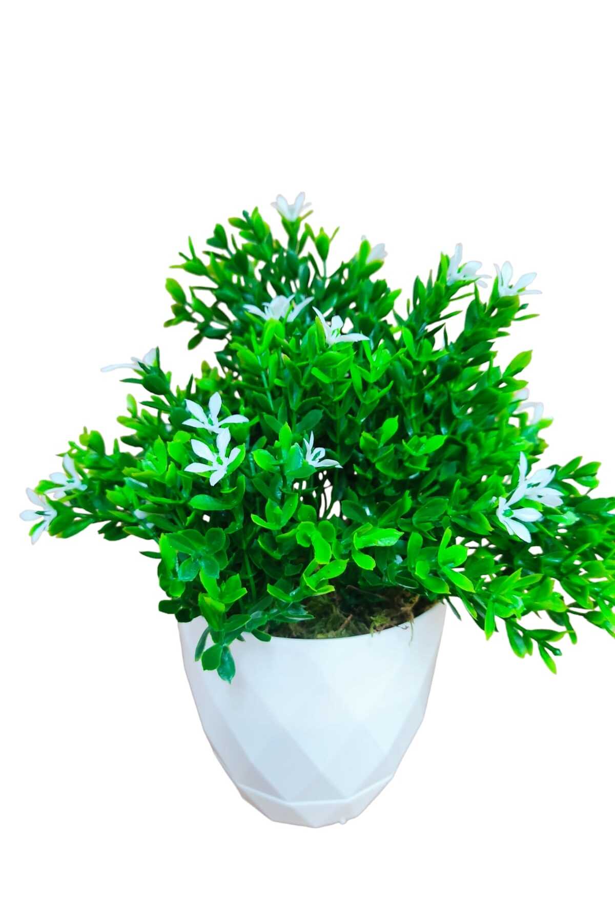 Çiçekli bonus fesleğen beyaz parlak saksıda yeşil yapraklı yapay çiçek Çiçekli bonus fesleğen beyaz parlak saksıda yeşil yapraklı yapay çiçek CNH2250 تک سایز