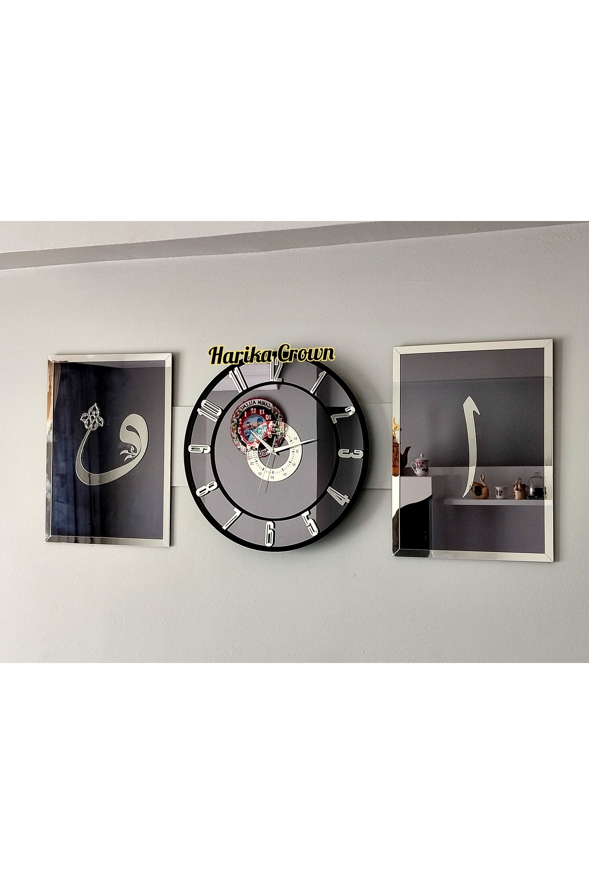 Aynalı Model 2 Li Elif-Vav Tablo ve Saat Seti Aynalı Model 2 Li Elif-Vav Tablo ve Saat Seti SA1 تک سایز