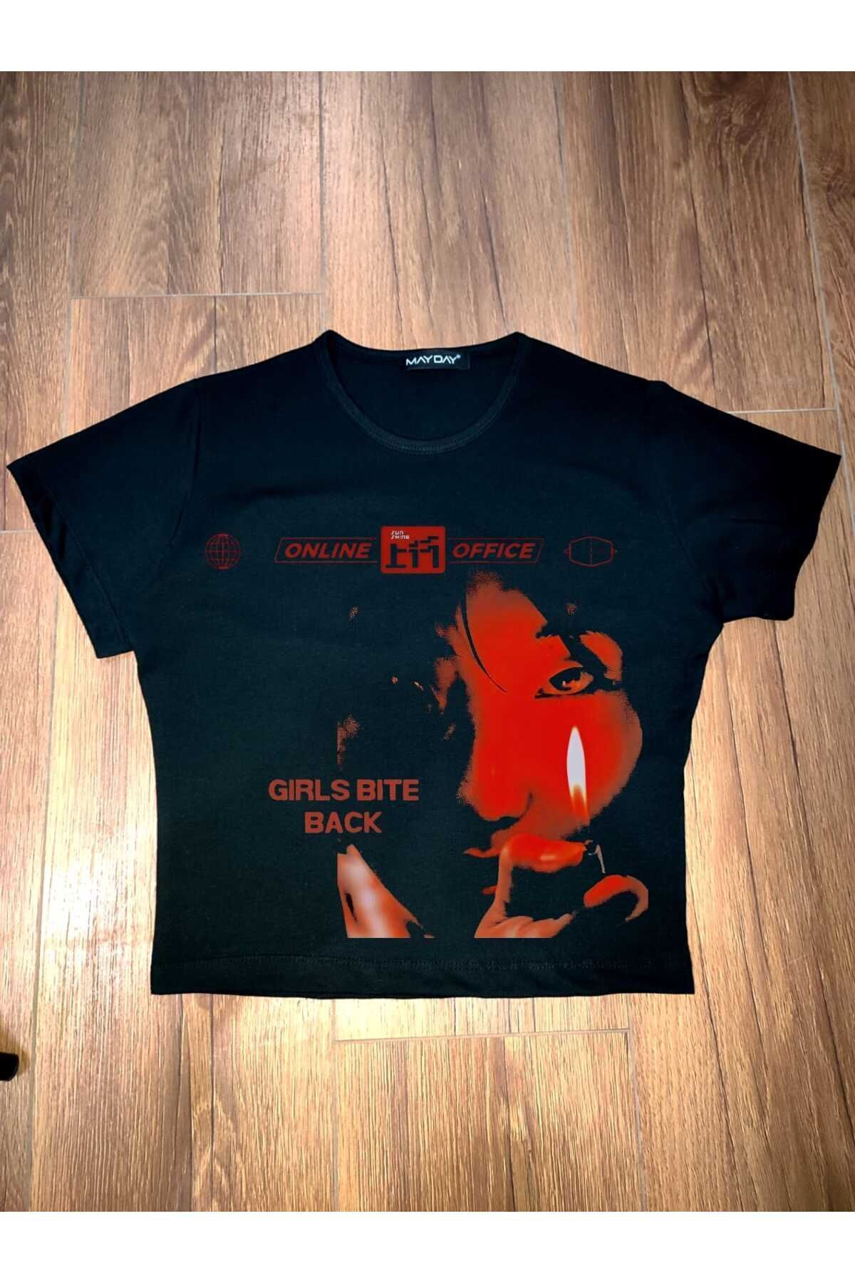 Kadın Üste Oturan Kalıp Bel Boy Crop Baskılı Bisiklet Yaka Baby Tee Kadın Üste Oturan Kalıp Bel Boy Crop Baskılı Bisiklet Yaka Baby Tee syh90ssbbt M