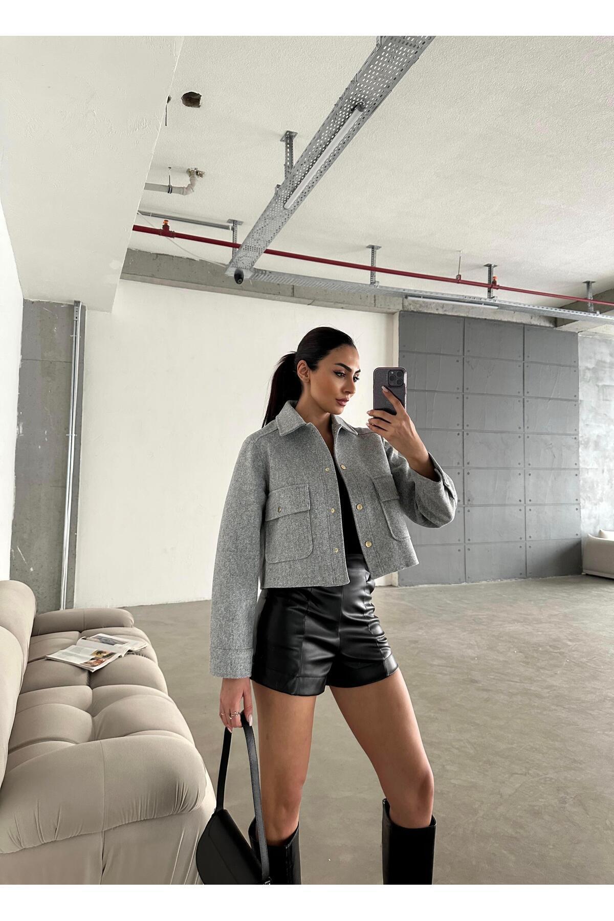 Kadın Kaşe Kumaş Cepli Gri Bomber Ceket Kadın Kaşe Kumaş Cepli Gri Bomber Ceket 24K002058 L