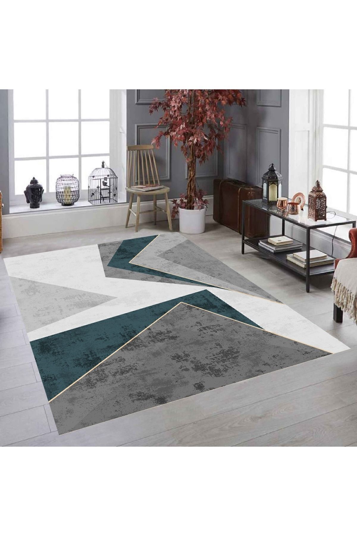 Geometrik Desen Kadife Halı Örtüsü Geometrik Desen Kadife Halı Örtüsü Lastikli İpek Kadife Halı Örtüsü 160 x 230