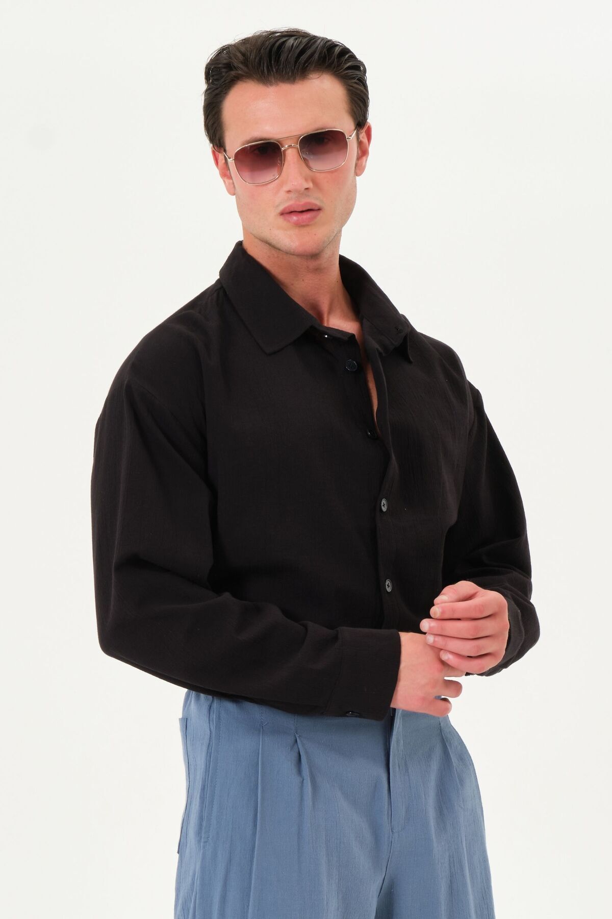 Erkek Büyük Beden Siyah Pamuk Düğmeli Yaka Cepli Uzun Kol Gömlek Erkek Büyük Beden Siyah Pamuk Düğmeli Yaka Cepli Uzun Kol Gömlek BTL-7000-TSS 8XL
