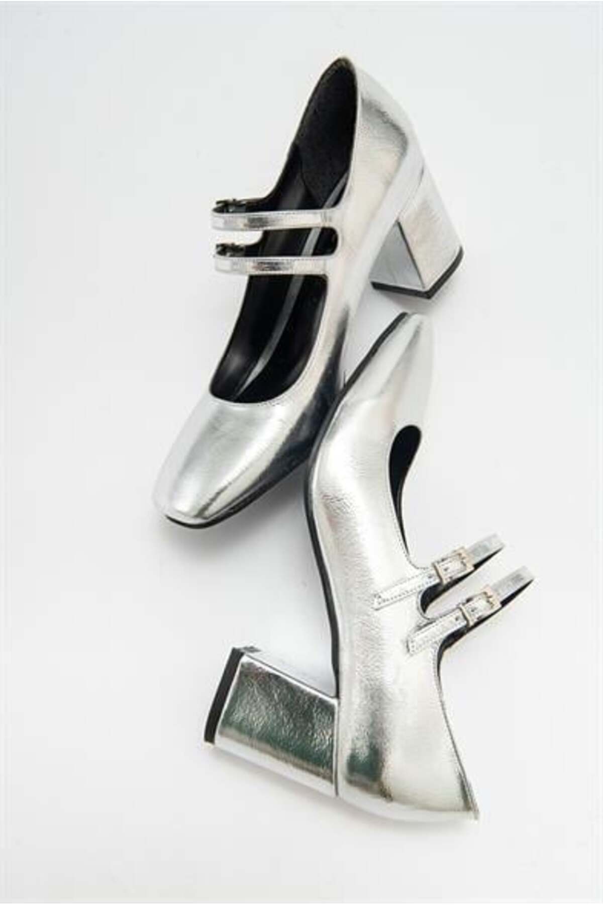 Kadın RYA Gümüş Metalik Çift Tokalı Kalın Topuklu Ayakkabı Kadın RYA Gümüş Metalik Çift Tokalı Kalın Topuklu Ayakkabı Z3-BERSH-01 41