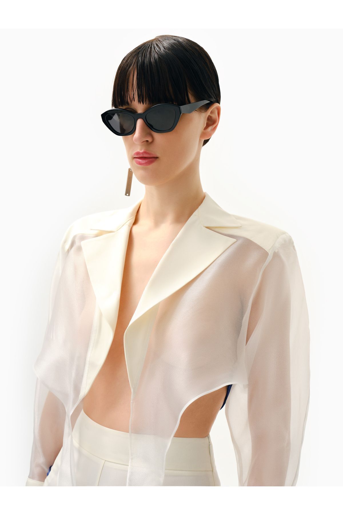 Kadın Siyah Apoletli Crop Deri Ceket Kadın Siyah Apoletli Crop Deri Ceket overderi L