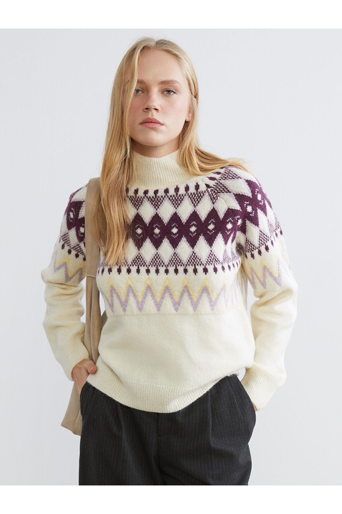 Balıkçı Yaka Düz Uzun Kollu Kadın Triko Kazak Balıkçı Yaka Düz Uzun Kollu Kadın Triko Kazak W3DH60Z8 S