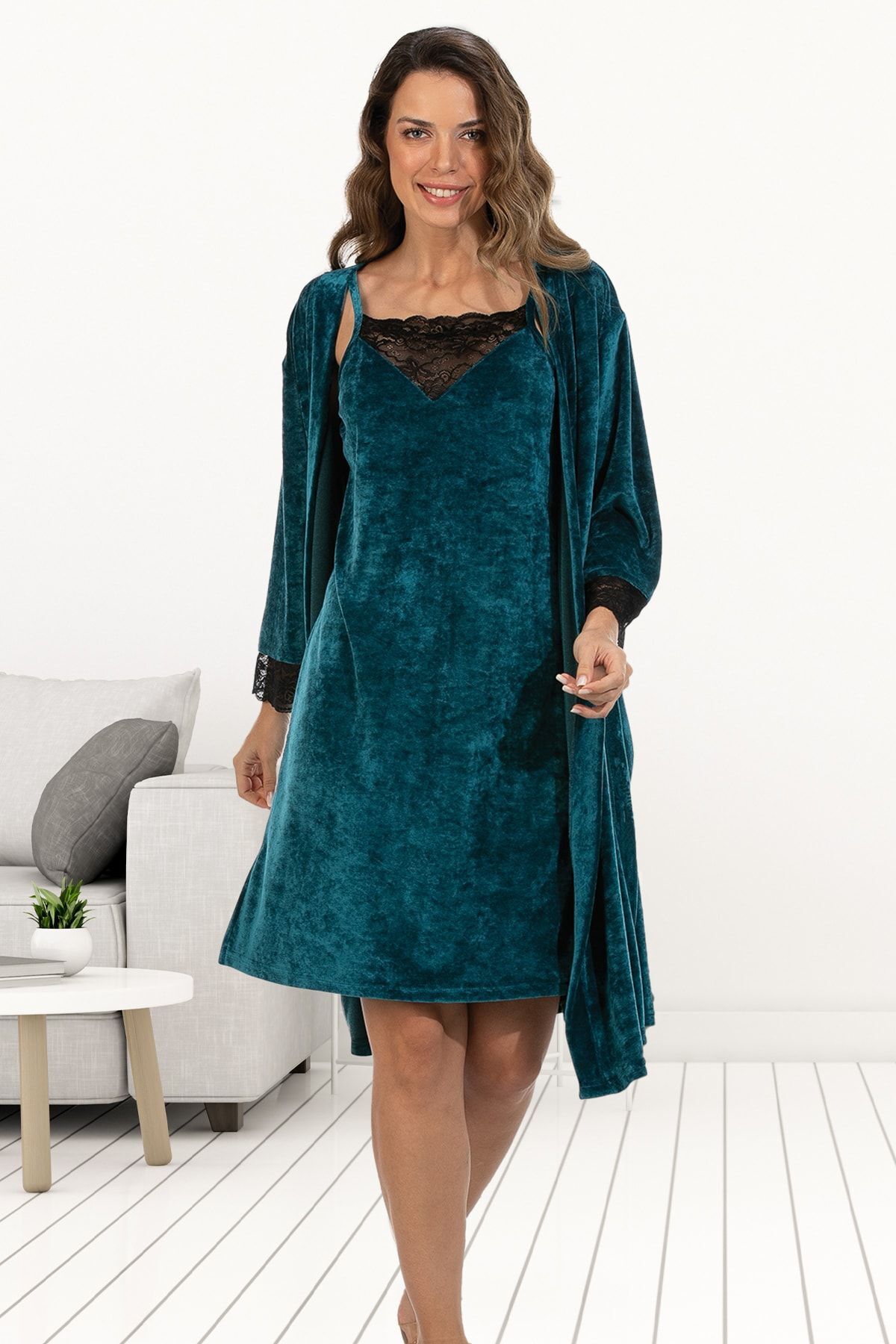 Viskon Kadife Dantelli Sabahlıklı Askılı Kadın Gecelik Takımı Viskon Kadife Dantelli Sabahlıklı Askılı Kadın Gecelik Takımı 9098 2XL
