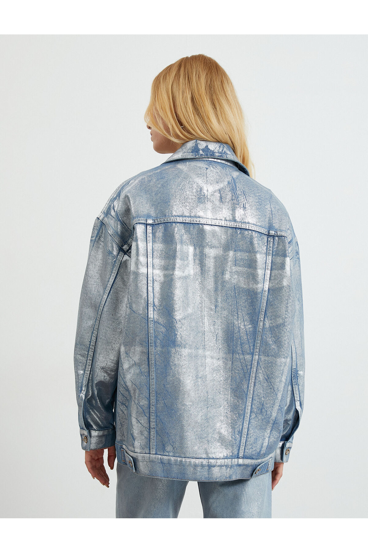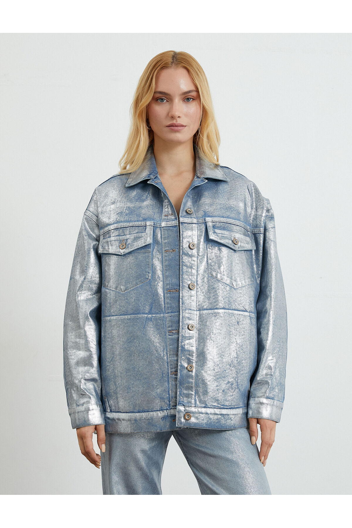 Kot Ceket Metalik Görünümlü Cep Detaylı Rahat Kesim Metal Düğmeli Kot Ceket Metalik Görünümlü Cep Detaylı Rahat Kesim Metal Düğmeli 4WAL50048MD L