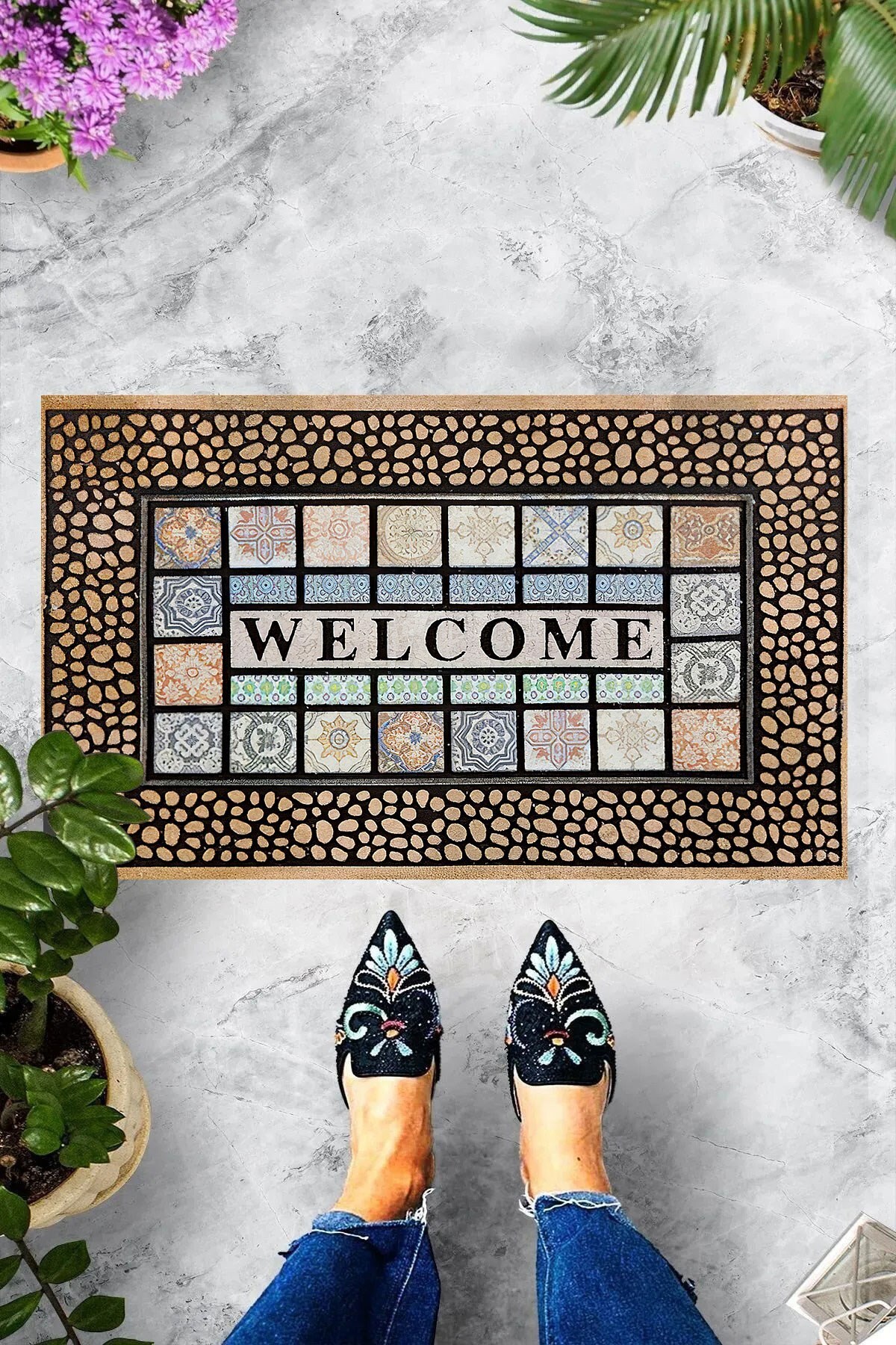 Dijital Baskılı Welcome Yazılı Gri çerçeveli Dekoratif Kapı Önü Paspası Dijital Baskılı Welcome Yazılı Gri çerçeveli Dekoratif Kapı Önü Paspası KPSS1 45 x 65