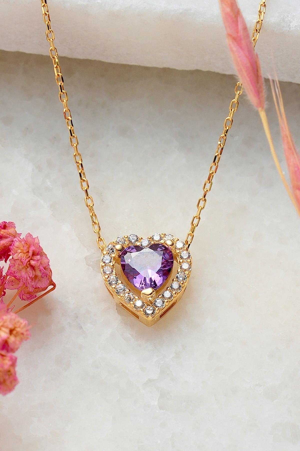 14 Ayar Kalp Ametist Renk Taşlı Altın Kolye 14 Ayar Kalp Ametist Renk Taşlı Altın Kolye GMSN021 43 cm