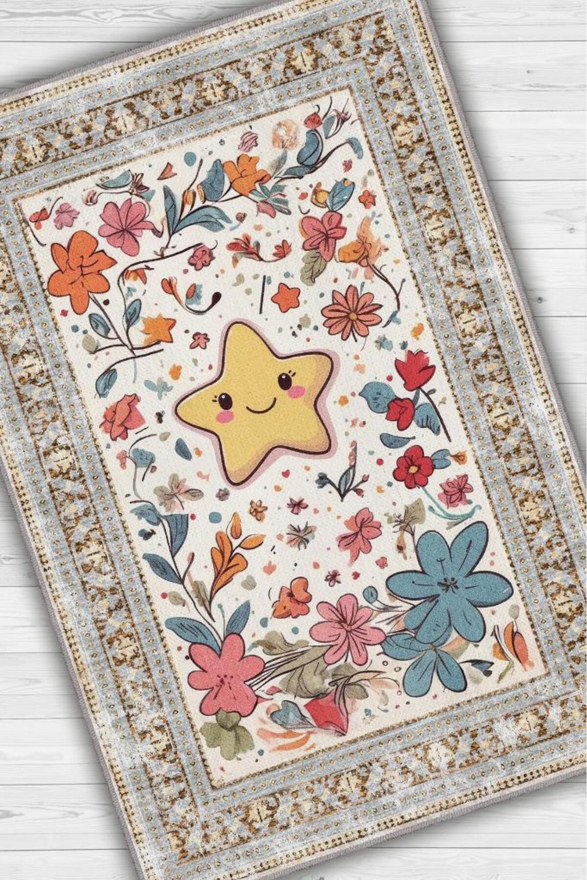 Çok Renkli Dokulu Çocuk Odası Halısı Dokuma Rustik Çocuk Halısı Yıldız Çiçek Temalı Halı Çok Renkli Dokulu Çocuk Odası Halısı Dokuma Rustik Çocuk Halısı Yıldız Çiçek Temalı Halı Kids_000036 80 x 240