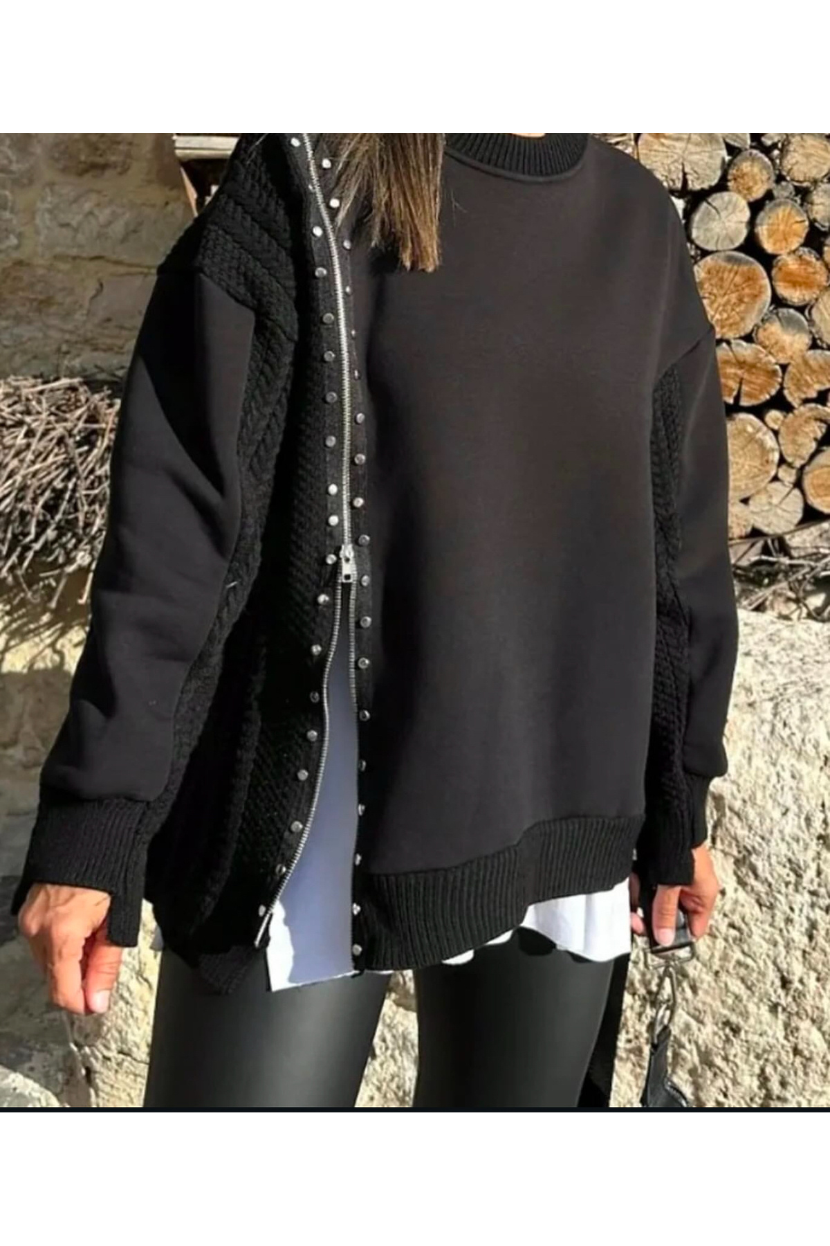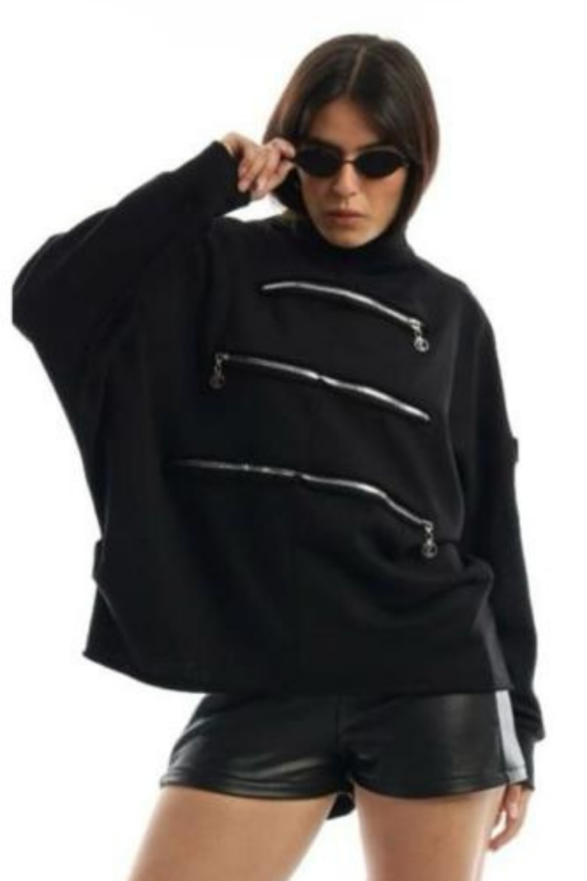 Siyah Fermuar Detaylı Sweatshirt Siyah Fermuar Detaylı Sweatshirt 1053 L