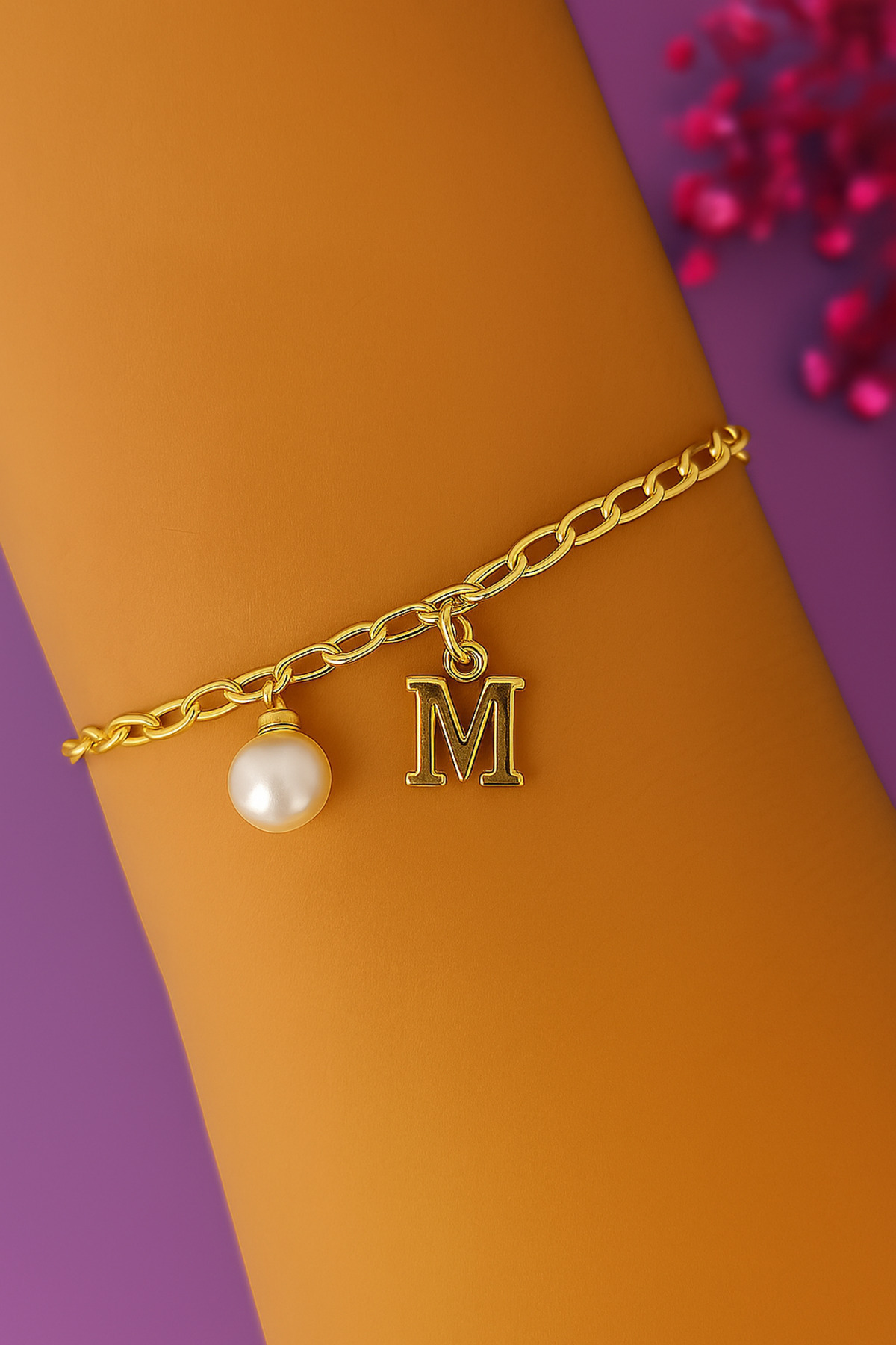 K Harfli incili gold bileklik K Harfli incili gold bileklik takı01722 تک سایز