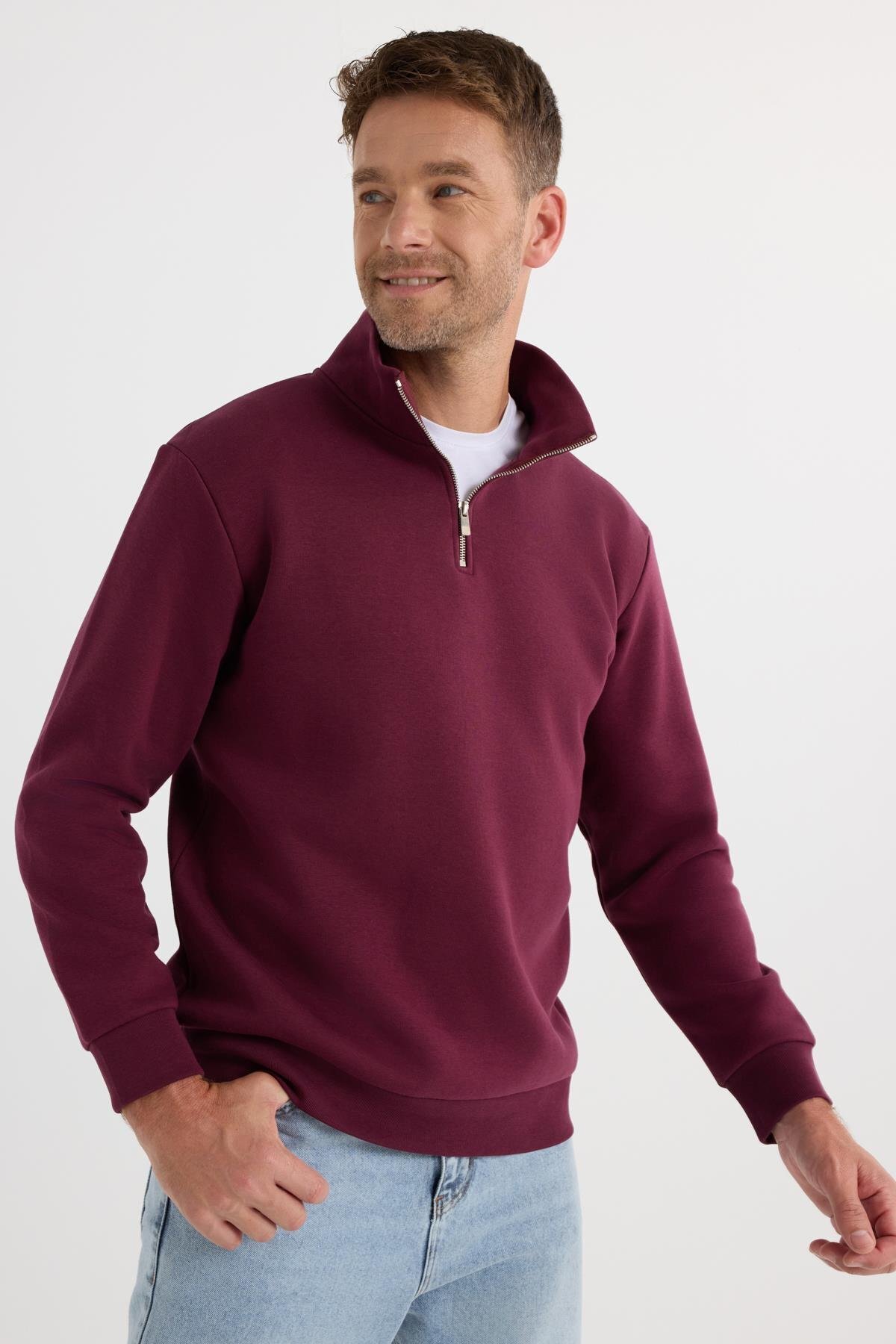 Unisex Relax Fit Rahat Kesim Pamuklu Içi Polarlı Yarım Fermuarlı Bordo Dik Yaka Sweatshirt Unisex Relax Fit Rahat Kesim Pamuklu Içi Polarlı Yarım Fermuarlı Bordo Dik Yaka Sweatshirt SW240002-01 3XL