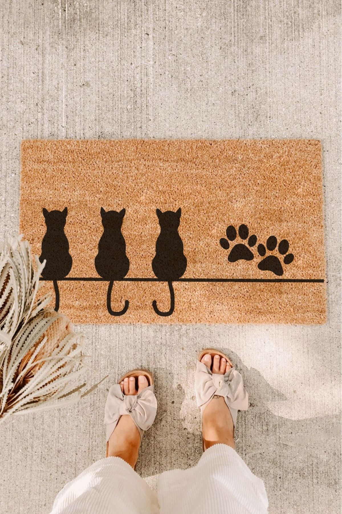 Dijital Baskılı Kedi Desenli Patilerinizi Siliniz Yazılı Dekoratif Kapı Önü Paspası Dijital Baskılı Kedi Desenli Patilerinizi Siliniz Yazılı Dekoratif Kapı Önü Paspası KPSS1 45 x 65
