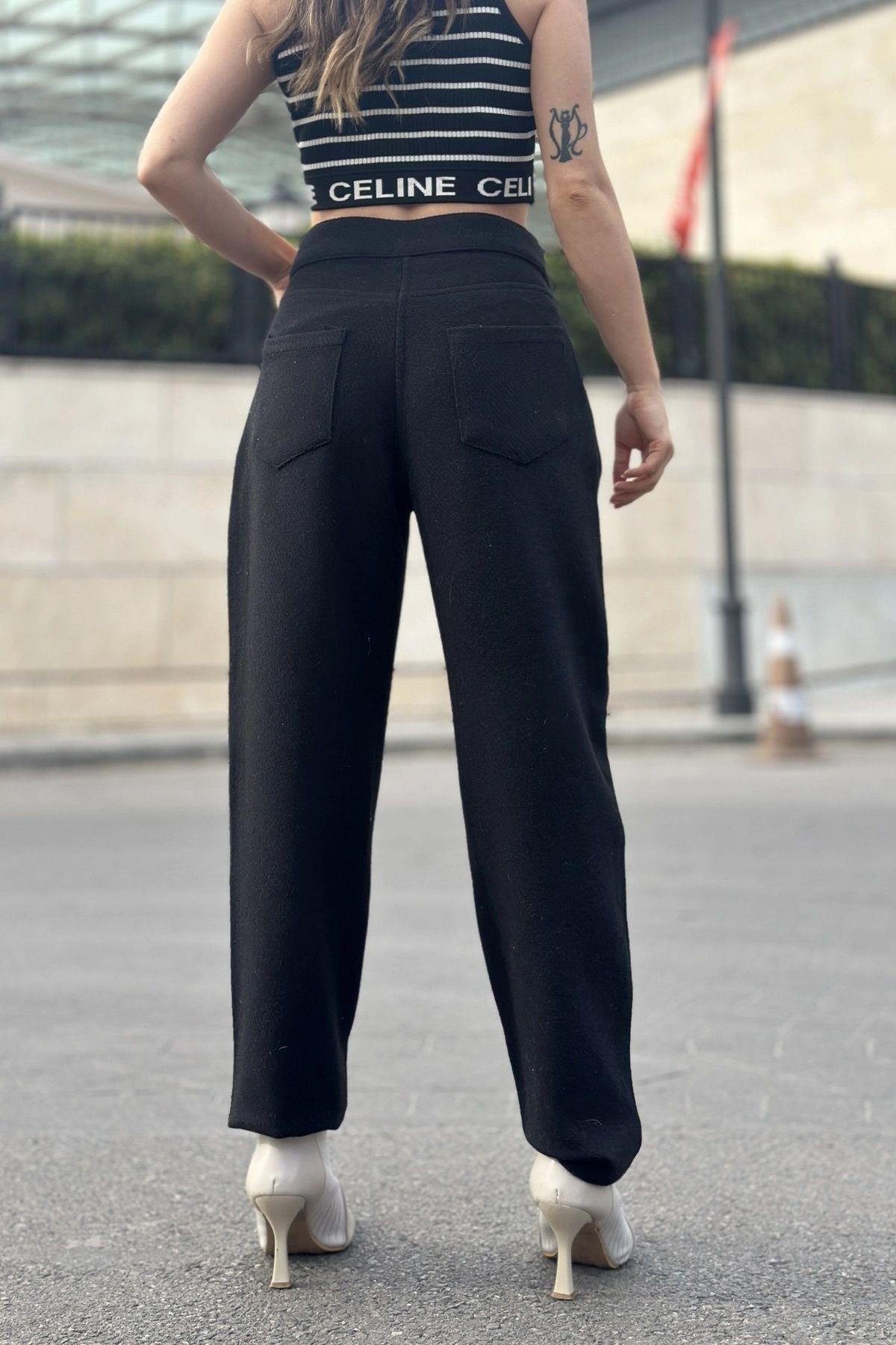 Kadın Siyah Yüksek Bel, Kaşe Kumaş, Rahat Kalıp, Regular Kesim, Pliseli, Cepli Pantolon Kadın Siyah Yüksek Bel, Kaşe Kumaş, Rahat Kalıp, Regular Kesim, Pliseli, Cepli Pantolon NY3448 42