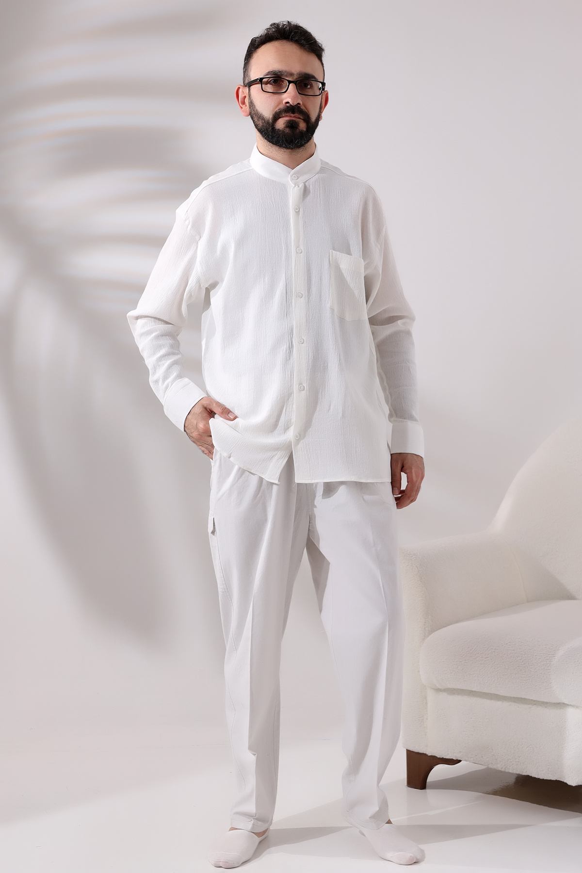 Krem Erkek Rahat Kesim Hakim Yaka Şile Bezi Hac ve Umre Gömlek Krem Erkek Rahat Kesim Hakim Yaka Şile Bezi Hac ve Umre Gömlek ihvn5573 2XL