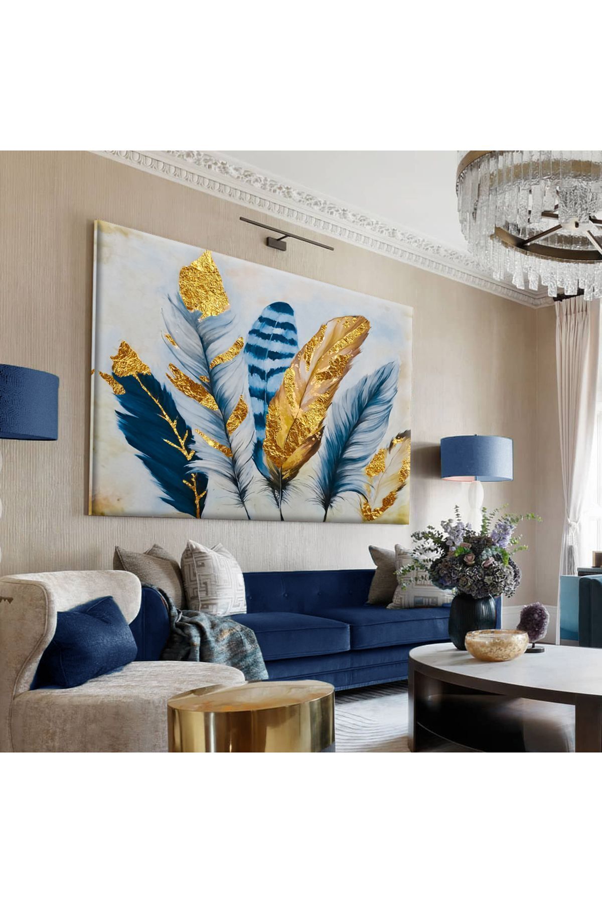 |LACİVERT-GOLD KOMBİNİ EN ÇOK SEVİLEN TÜY TABLOSU |ÇERÇEVESİZ KANVAS TABLO |LACİVERT-GOLD KOMBİNİ EN ÇOK SEVİLEN TÜY TABLOSU |ÇERÇEVESİZ KANVAS TABLO HRKBRVYTYKNVS0000012 100 x 150