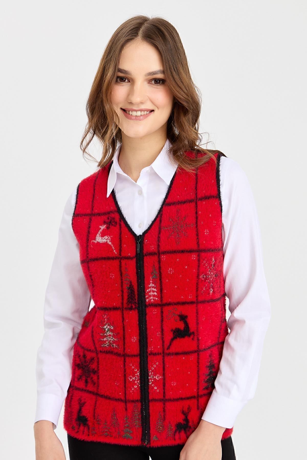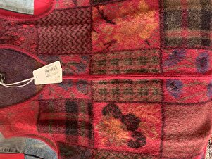 Kadın V Yaka Patchwork Yelek Kırmızı Kadın V Yaka Patchwork Yelek Kırmızı 3999 XL