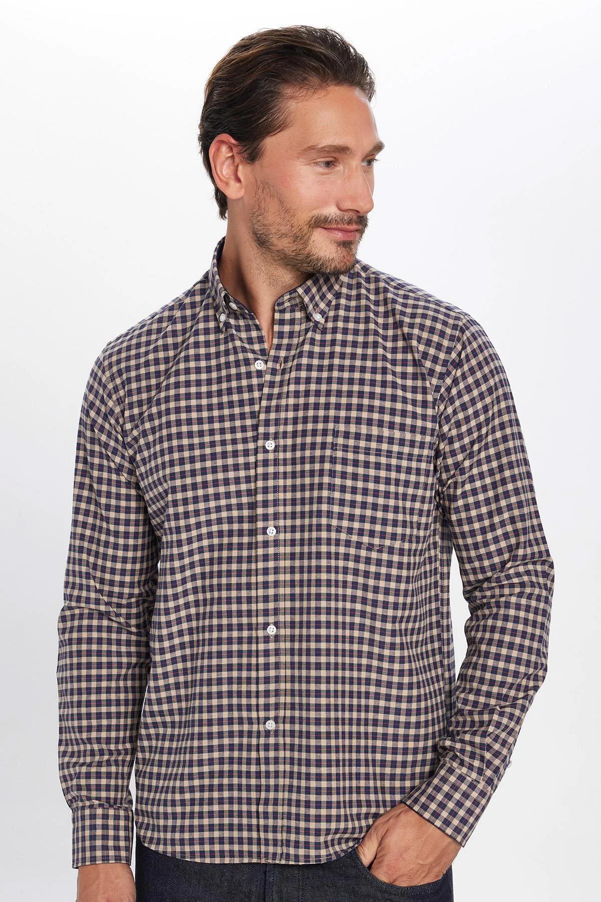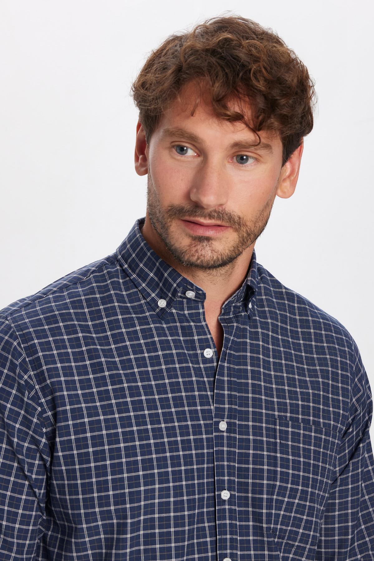 Erkek Regular Fit Klasik Kesim Düğmeli Yaka Küçük Kareli Pamuklu Lacivert-Beyaz Gömlek Erkek Regular Fit Klasik Kesim Düğmeli Yaka Küçük Kareli Pamuklu Lacivert-Beyaz Gömlek KL230031-322 2XL