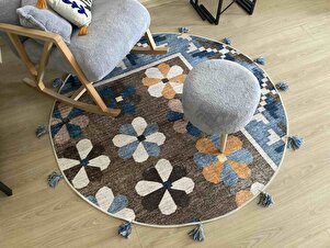Kahve Mavi Temalı Karışık Şekil Desenli Kreatif Modern Dokuma Taban Yuvarlak Dekoratif Halı 2265 Kahve Mavi Temalı Karışık Şekil Desenli Kreatif Modern Dokuma Taban Yuvarlak Dekoratif Halı 2265 mira2265 150 x 150