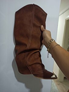 Taba Nubuk (Monroe) Büzgü Detay Kadın Topuklu Çizme Taba Nubuk (Monroe) Büzgü Detay Kadın Topuklu Çizme ERV2478 40