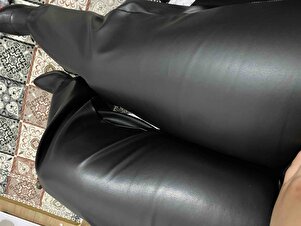 Siyah Bol Paça Cep Detaylı Deri Pantolon Siyah Bol Paça Cep Detaylı Deri Pantolon DP1111 XL