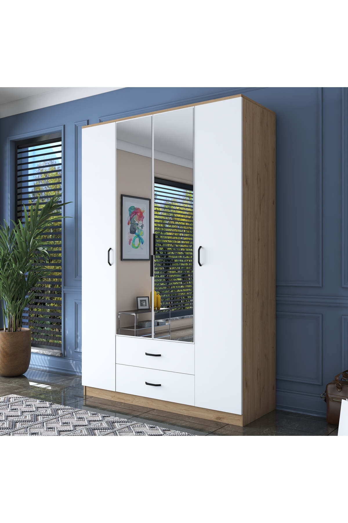 Rani BA130 Geniş Gardırop Elbise Dolabı Aynalı Kapaklı 2 Çekmeceli 3 Askılı Sepet Ceviz - Beyaz Rani BA130 Geniş Gardırop Elbise Dolabı Aynalı Kapaklı 2 Çekmeceli 3 Askılı Sepet Ceviz - Beyaz 2324 210 cm