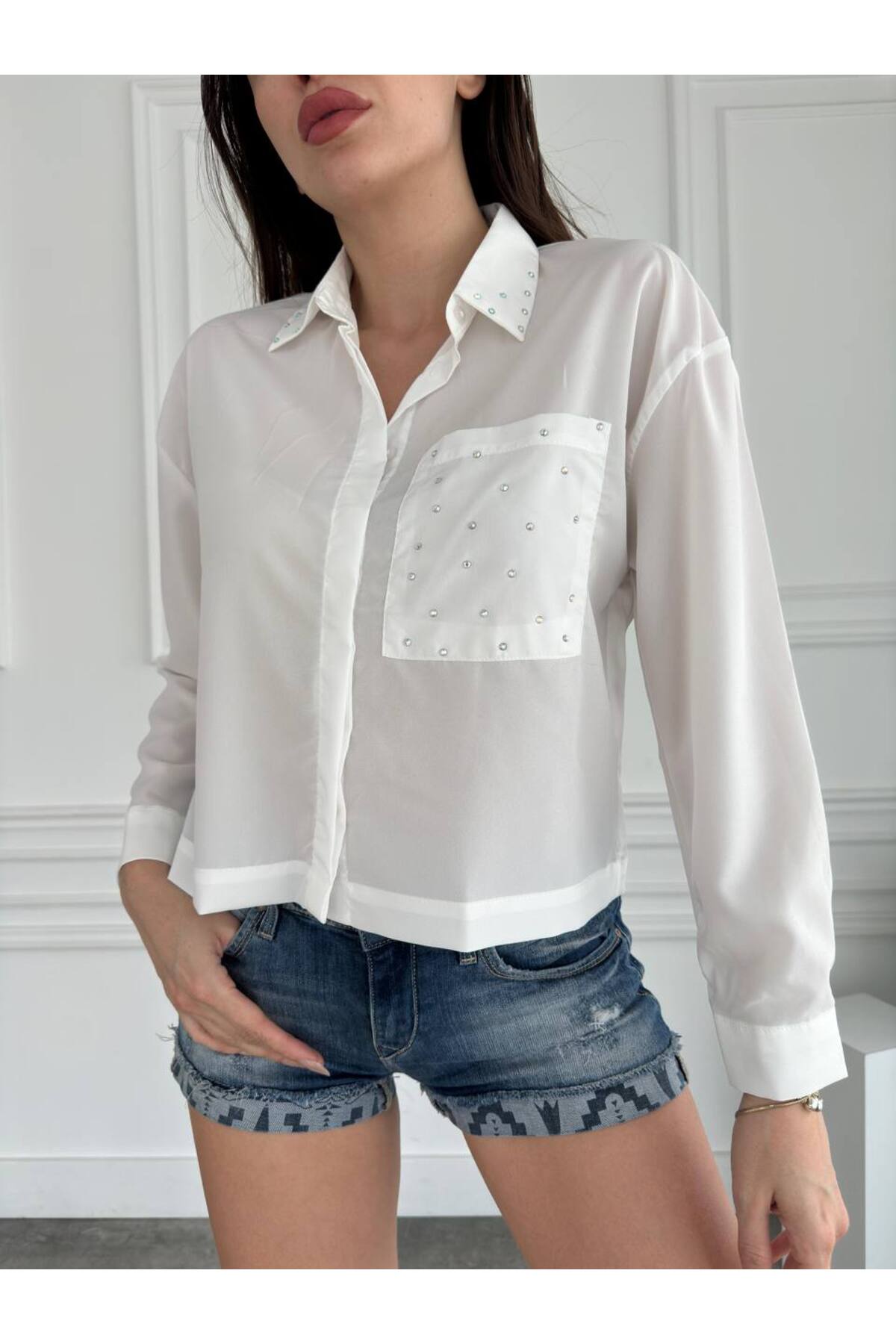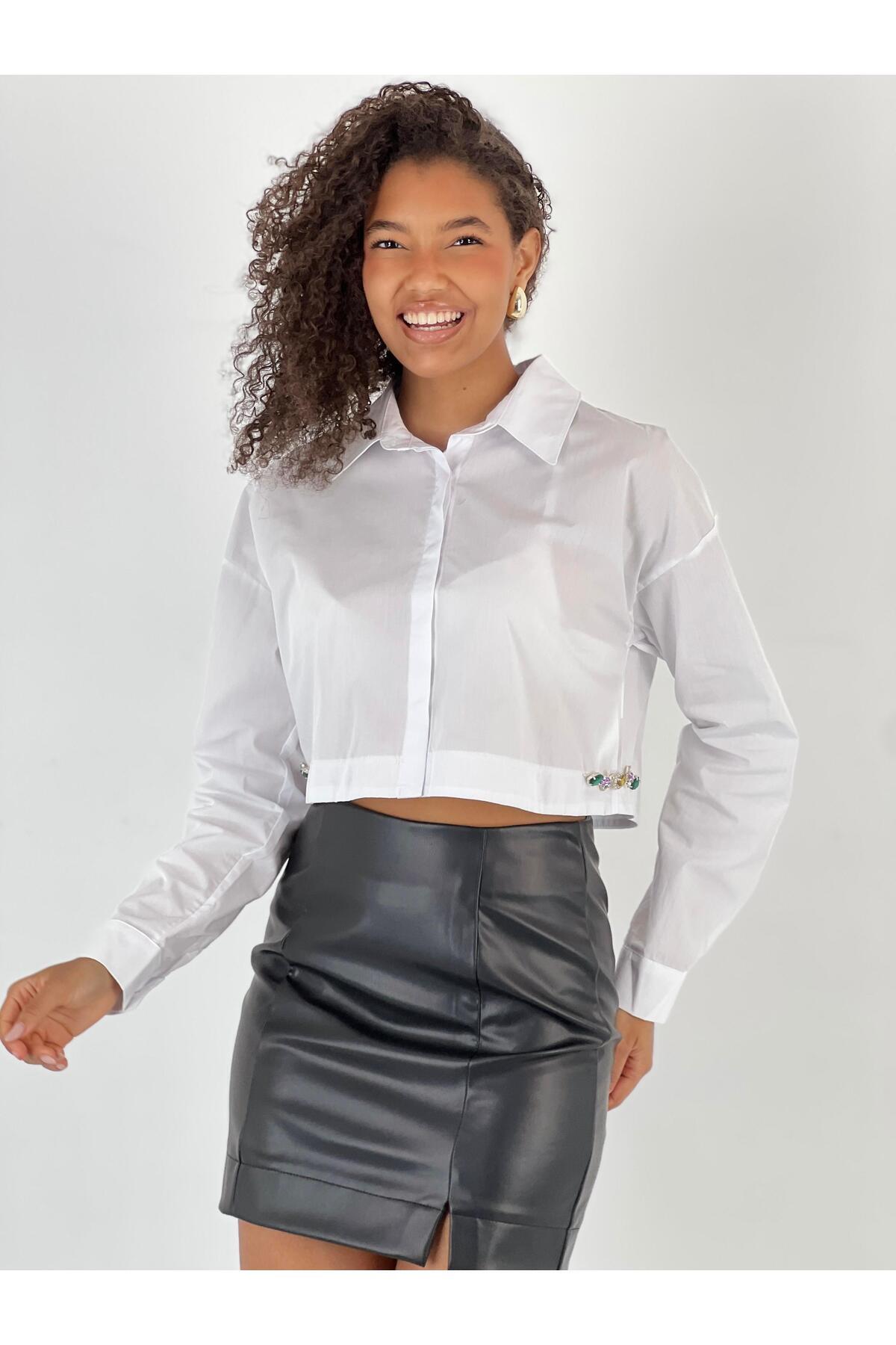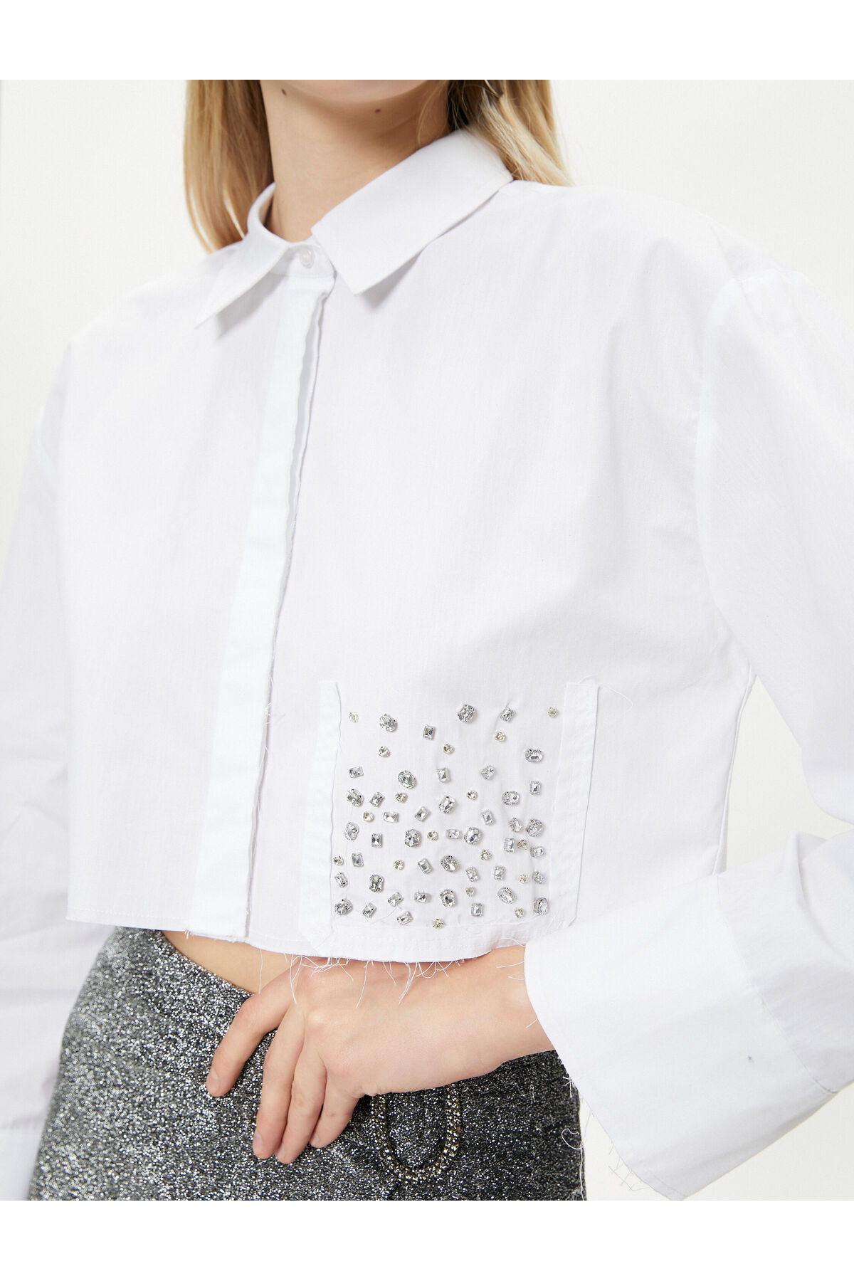 Crop Taşlı Gömlek Uzun Kollu Pamuklu - El Emeği Koleksiyonu Crop Taşlı Gömlek Uzun Kollu Pamuklu - El Emeği Koleksiyonu 4WAK60149EW 42