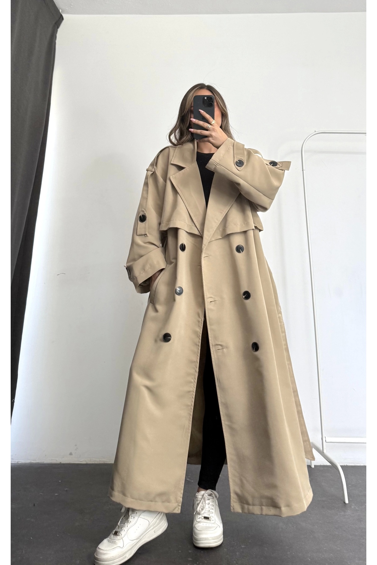 PREMİUM OVERSİZE TRENCKOT BEJ PREMİUM OVERSİZE TRENCKOT BEJ M-3546-24 M/L
