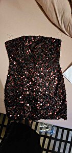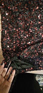 Kırmızı Payetli Kuş Tüyü Detaylı Askılı Siyah Mini Elbise Kırmızı Payetli Kuş Tüyü Detaylı Askılı Siyah Mini Elbise BMELY-1389 L