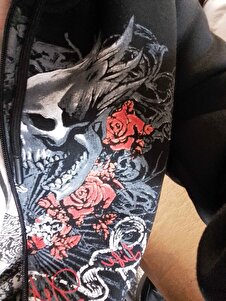 Harajuku Gothic Skull and Rose Siyah Fermuarlu Sweatshirt Harajuku Gothic Skull and Rose Siyah Fermuarlu Sweatshirt arsroceskullfermuarlısweat XL