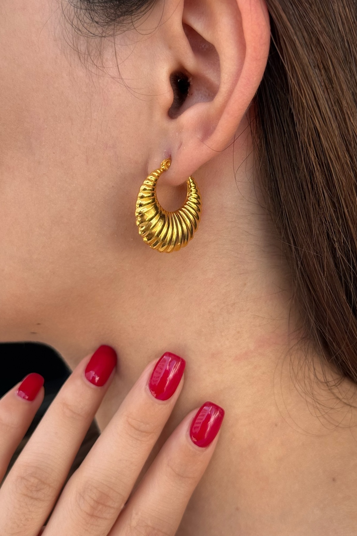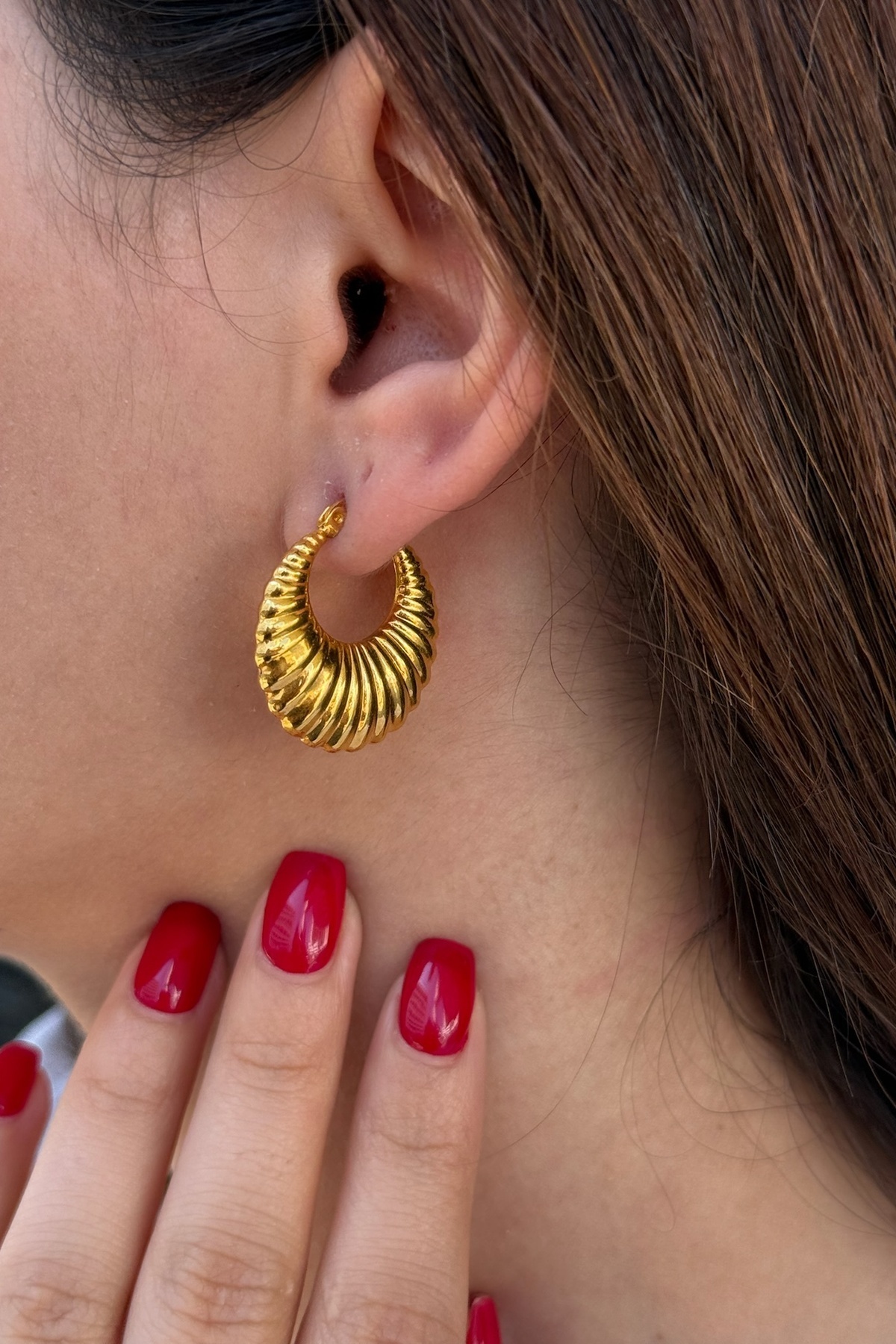 22 AYAR ÖZEL ÜRETİM MİDYE MODELİ HALKA ALTIN KÜPE 22 AYAR ÖZEL ÜRETİM MİDYE MODELİ HALKA ALTIN KÜPE UTKUKP00426 تک سایز