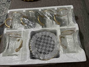 Damalı model altın 24 prç kahvaltı takımı. Damalı model altın 24 prç kahvaltı takımı. Damalı model altın 24 prç takımı. تک سایز
