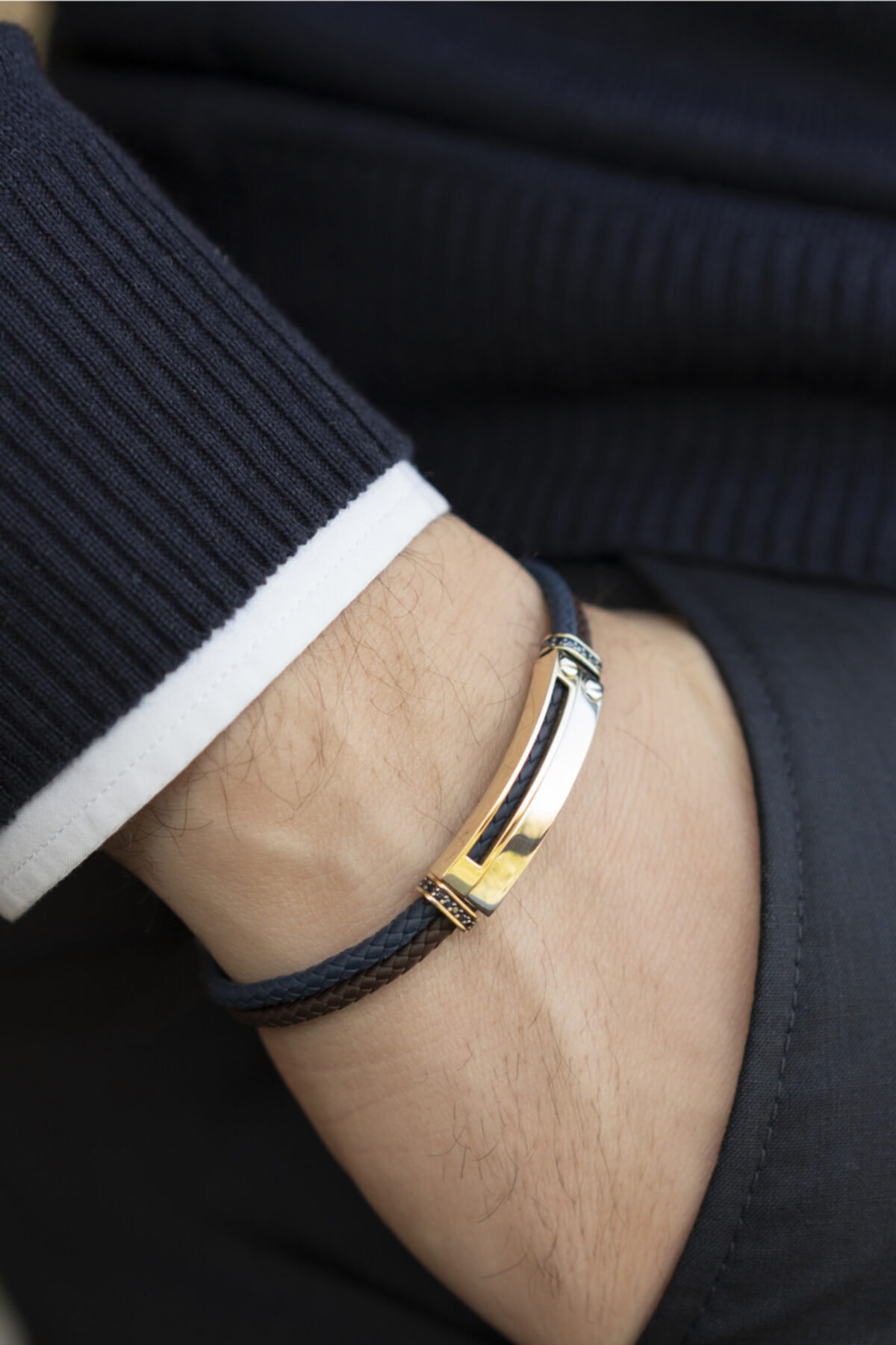 14 Ayar Altın Çift Kordonlu Siyah Kauçuk Erkek Bilekliği 14 Ayar Altın Çift Kordonlu Siyah Kauçuk Erkek Bilekliği MAN2465 19 cm