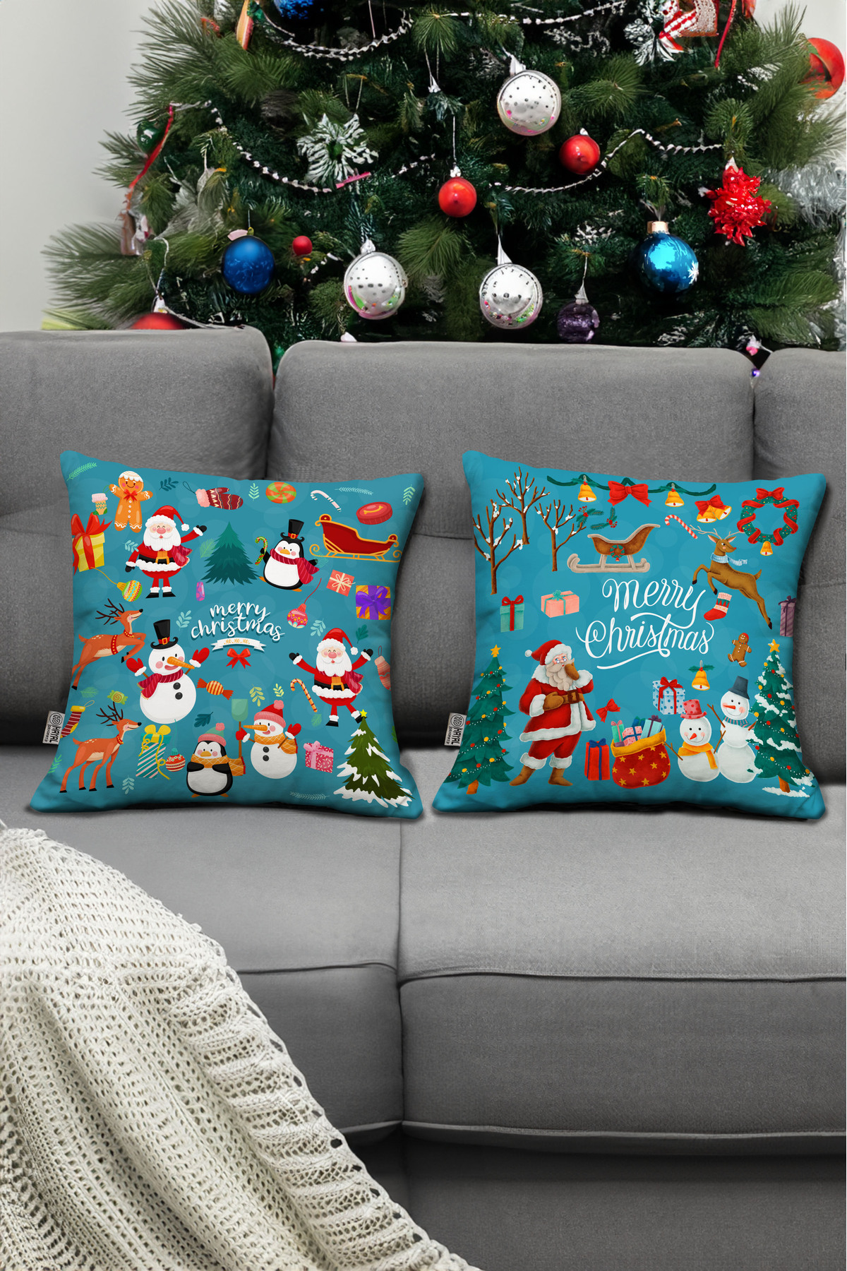 Yılbaşı Temalı Kırmızı Renkli Noel Baba ve Çocuk Desenli Dijital Baskılı Kırlent Kılıfı Yılbaşı Temalı Kırmızı Renkli Noel Baba ve Çocuk Desenli Dijital Baskılı Kırlent Kılıfı YLB 43 x 43