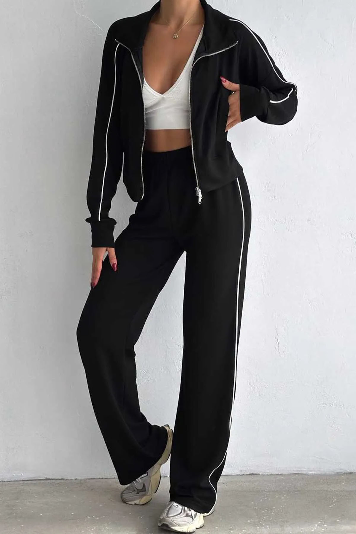 Siyah Biyeli Modal Eşofman Takım Siyah Biyeli Modal Eşofman Takım W234001 40