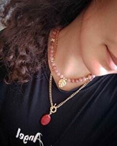 ( 2 KOLYE ) Doğal Taş Pembe KUVARS Taşı ÇELİK Zincir Altın Kaplama Kolye Ucu Kadın Kolye Özel Hediye ( 2 KOLYE ) Doğal Taş Pembe KUVARS Taşı ÇELİK Zincir Altın Kaplama Kolye Ucu Kadın Kolye Özel Hediye pembeyaprakkolye M
