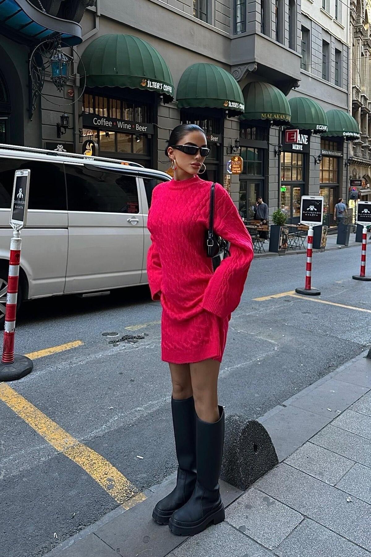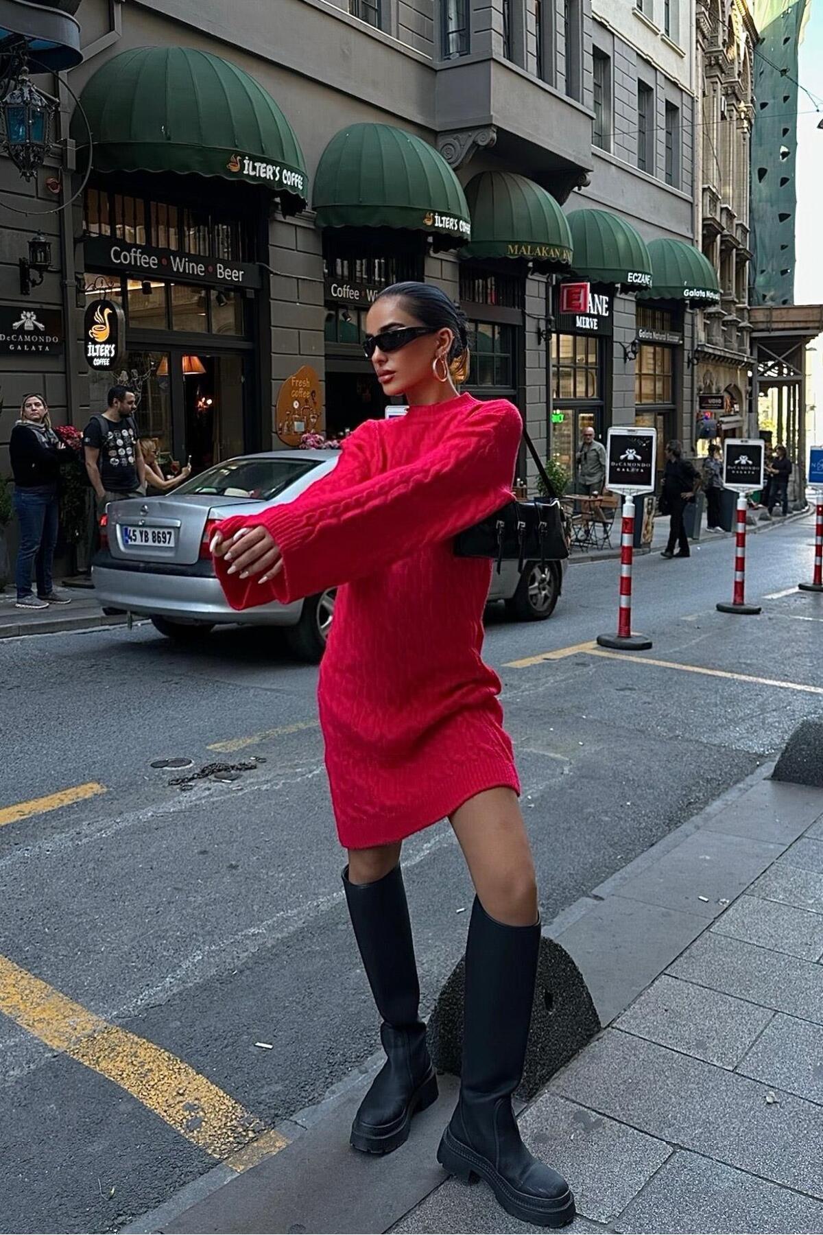 Melanie Örgü Desen Mini Elbise 2537-02 R4-D-K4 Melanie Örgü Desen Mini Elbise 2537-02 R4-D-K4 S4K2537 14STD