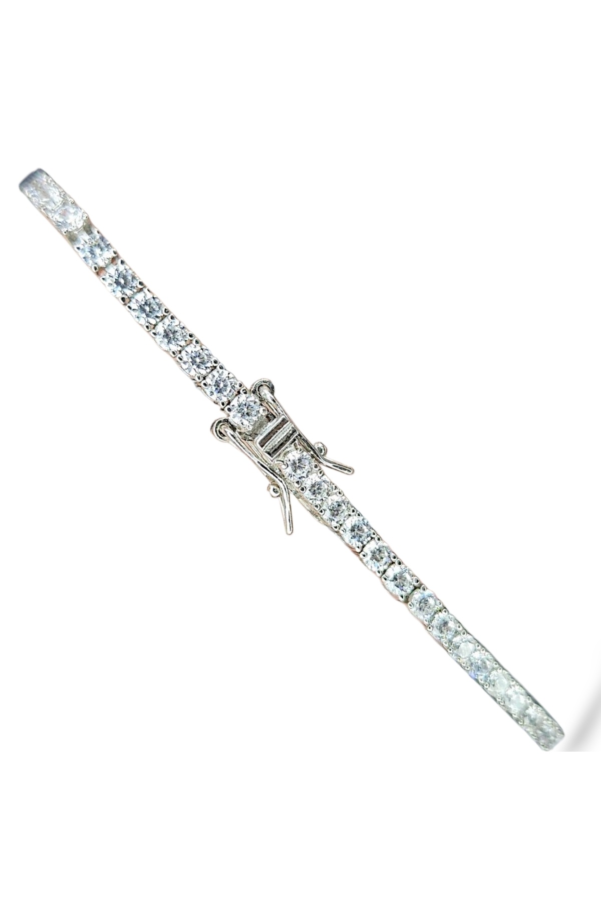 18 Ayar Beyaz Altın Kaplama Gümüş 2,5mm Zirkon Taşlı Su Yolu Bileklik Shine Koleksiyon 18 Ayar Beyaz Altın Kaplama Gümüş 2,5mm Zirkon Taşlı Su Yolu Bileklik Shine Koleksiyon MCWJB000093SS تک سایز