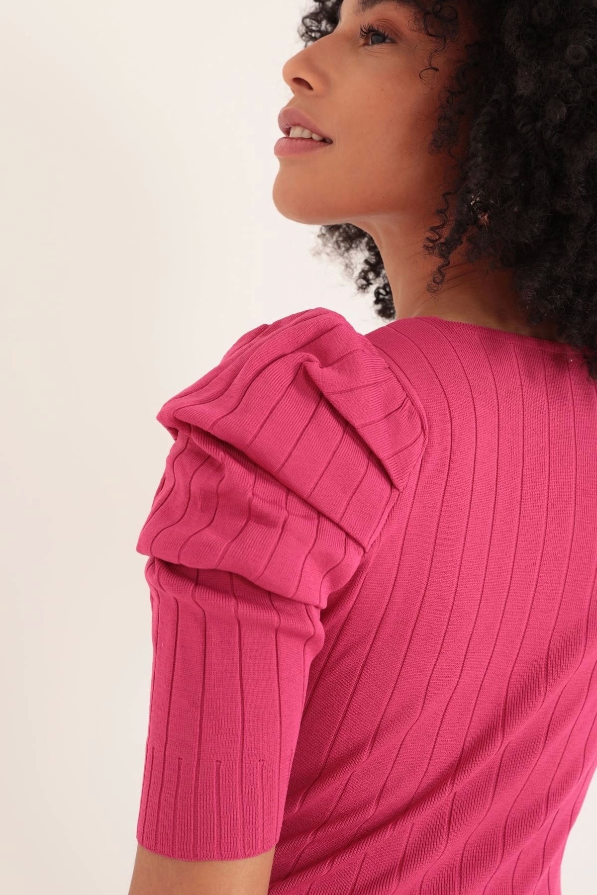 Triko Kumaş Karpuz Kol Kadın Bluz-Fuşya Triko Kumaş Karpuz Kol Kadın Bluz-Fuşya 23TS006-01 Standart