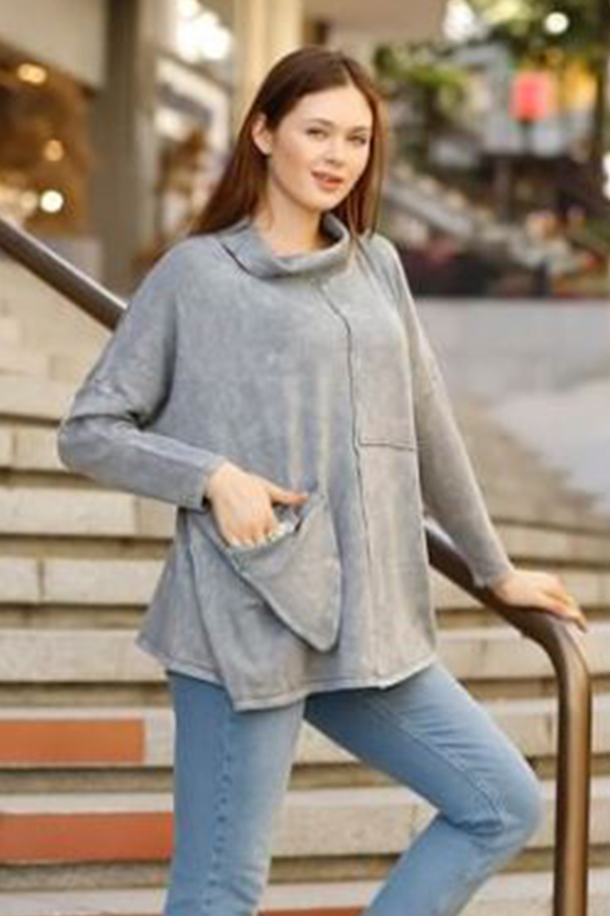 Kadın Gri Şal Yaka Saç Örgülü Yarasa Kol Salaş Pamuklu Triko Bluz Kazak Kadın Gri Şal Yaka Saç Örgülü Yarasa Kol Salaş Pamuklu Triko Bluz Kazak 2448-SCHS Standart
