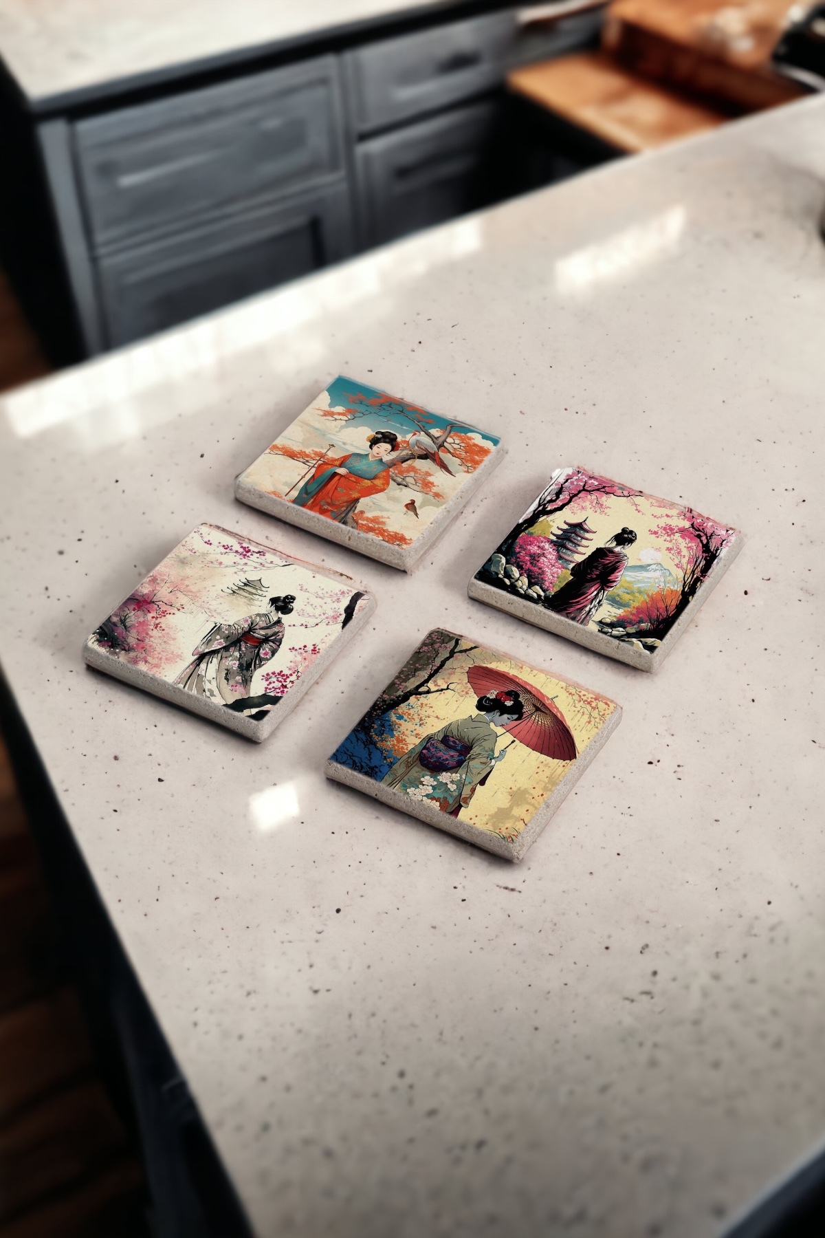 Japon Tarihi, Japon Culture Temalı Doğal Taş Traverten Bardak Altlığı 4 Lü Set Japon Tarihi, Japon Culture Temalı Doğal Taş Traverten Bardak Altlığı 4 Lü Set BAUMSC149 تک سایز