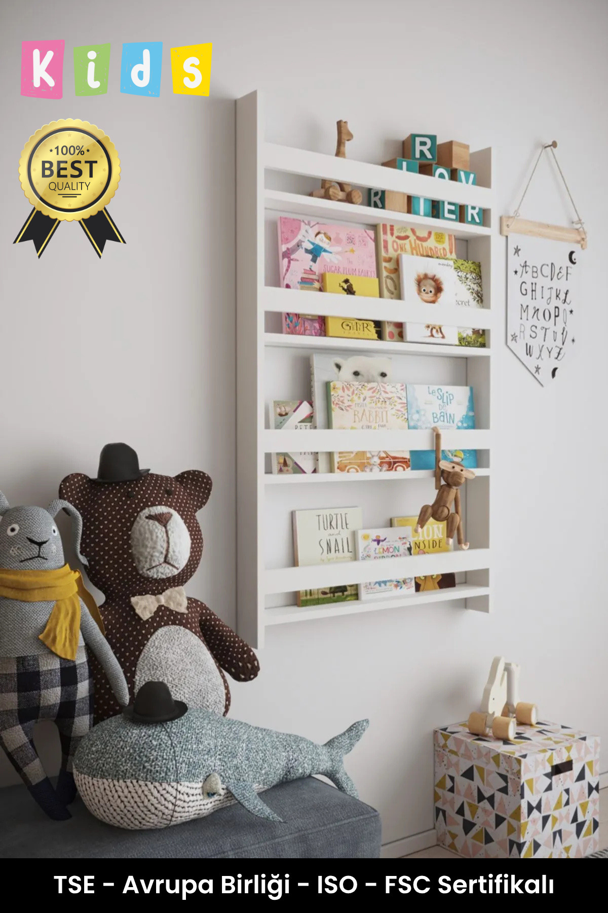 Montessori 3 Raflı Mdflam Çocuk Kitaplığı 80*60 Cm Beyaz Montessori 3 Raflı Mdflam Çocuk Kitaplığı 80*60 Cm Beyaz MK0160 60 cm