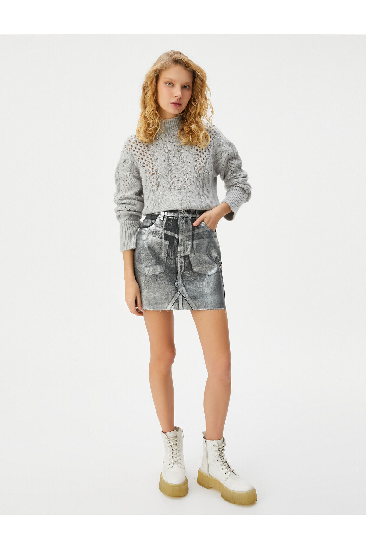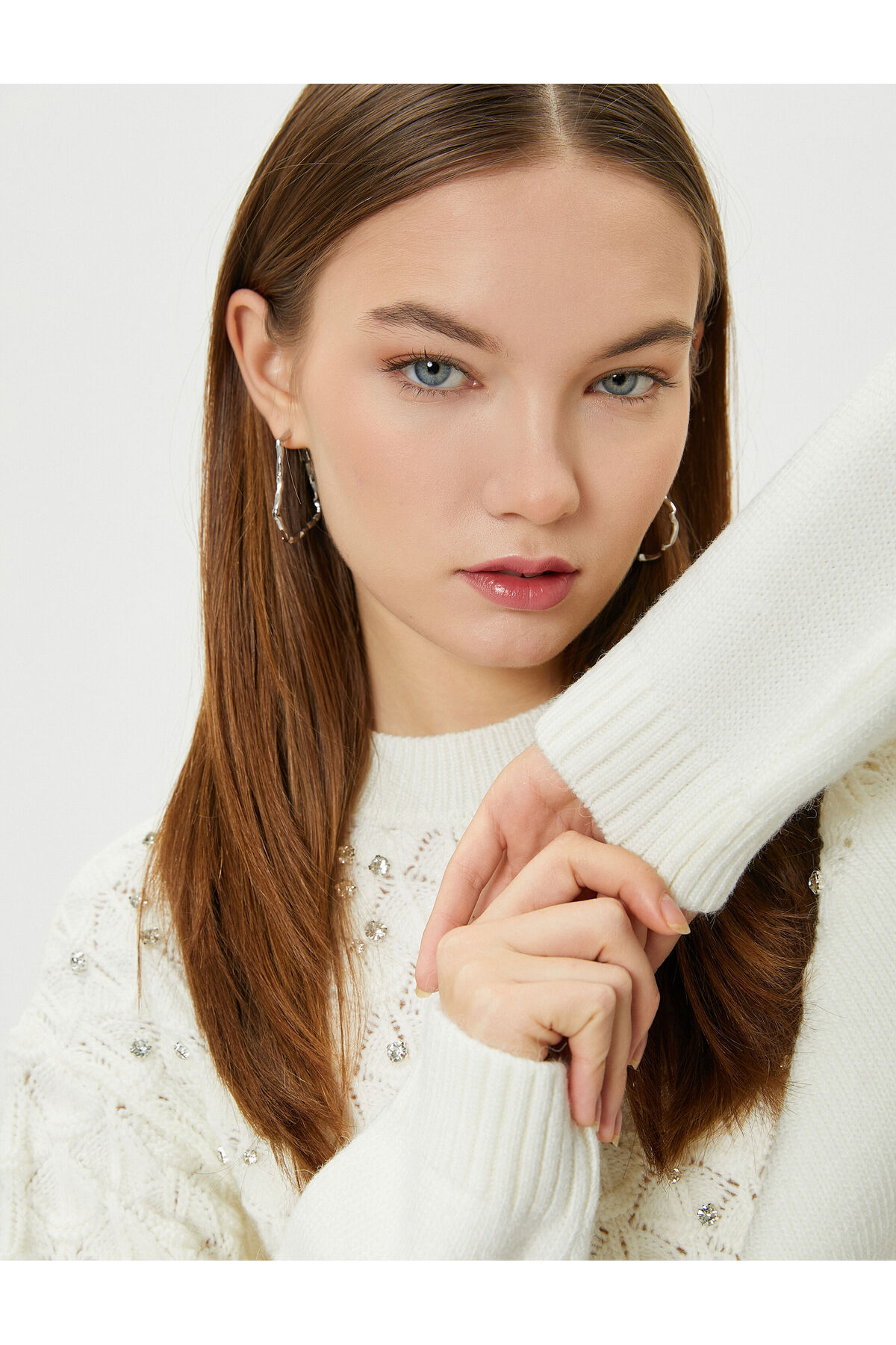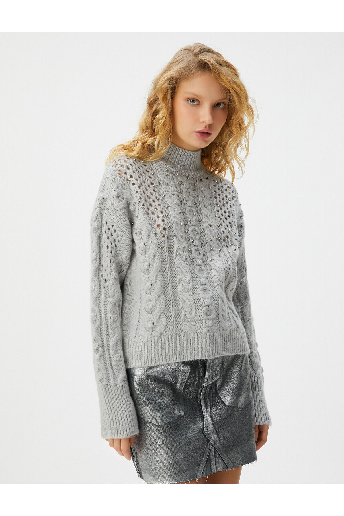 Taşlı Ajurlu Balıkçı Yaka Kazak Uzun Kollu Yumuşak Dokulu Taşlı Ajurlu Balıkçı Yaka Kazak Uzun Kollu Yumuşak Dokulu 4WAL90145HT L