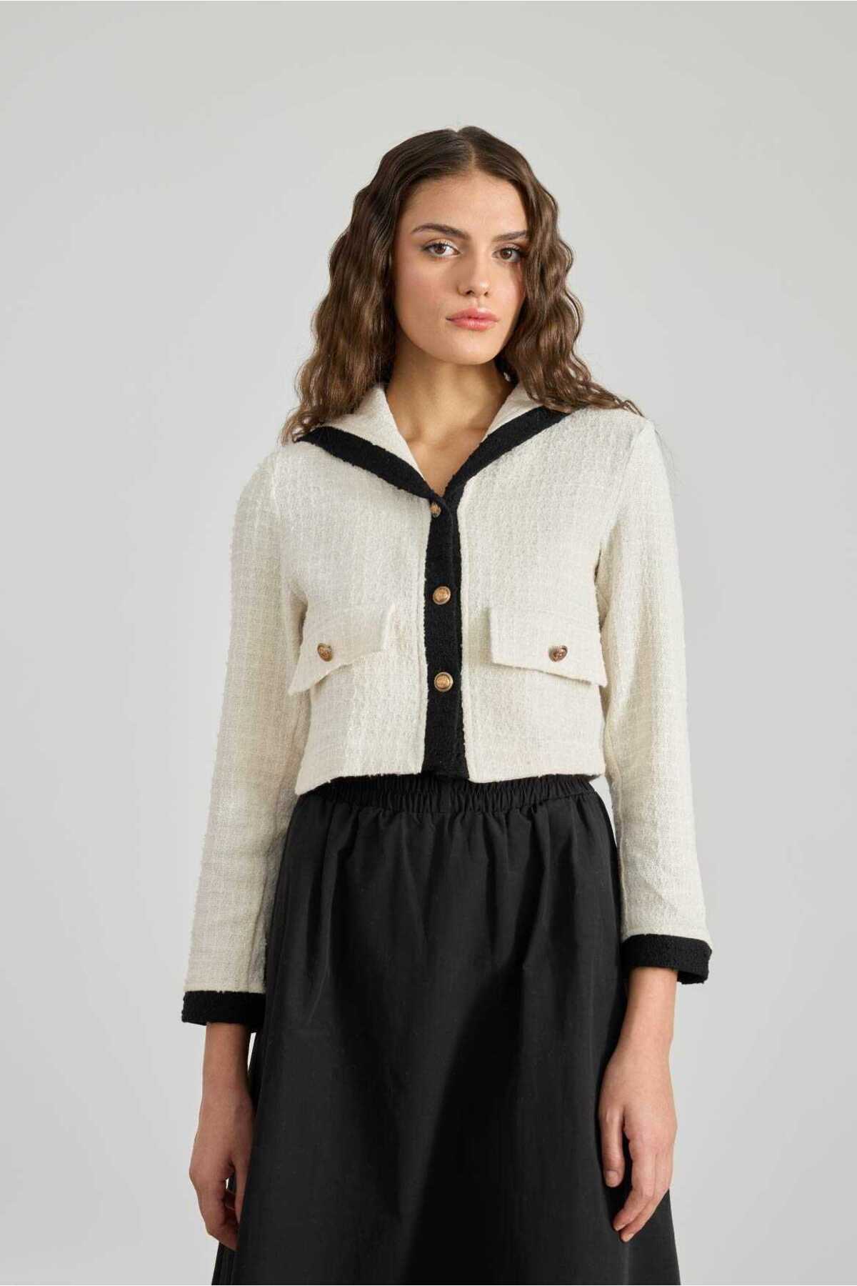 Denizci Yaka Tüvit Ceket Ekru Denizci Yaka Tüvit Ceket Ekru c168-2972 42
