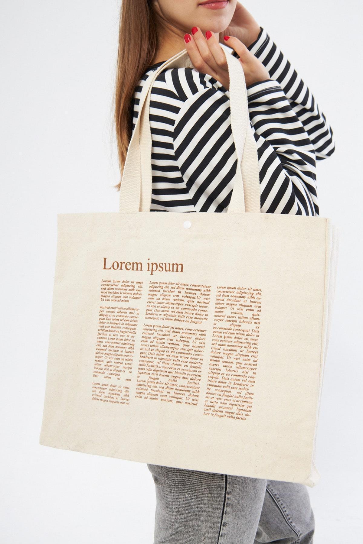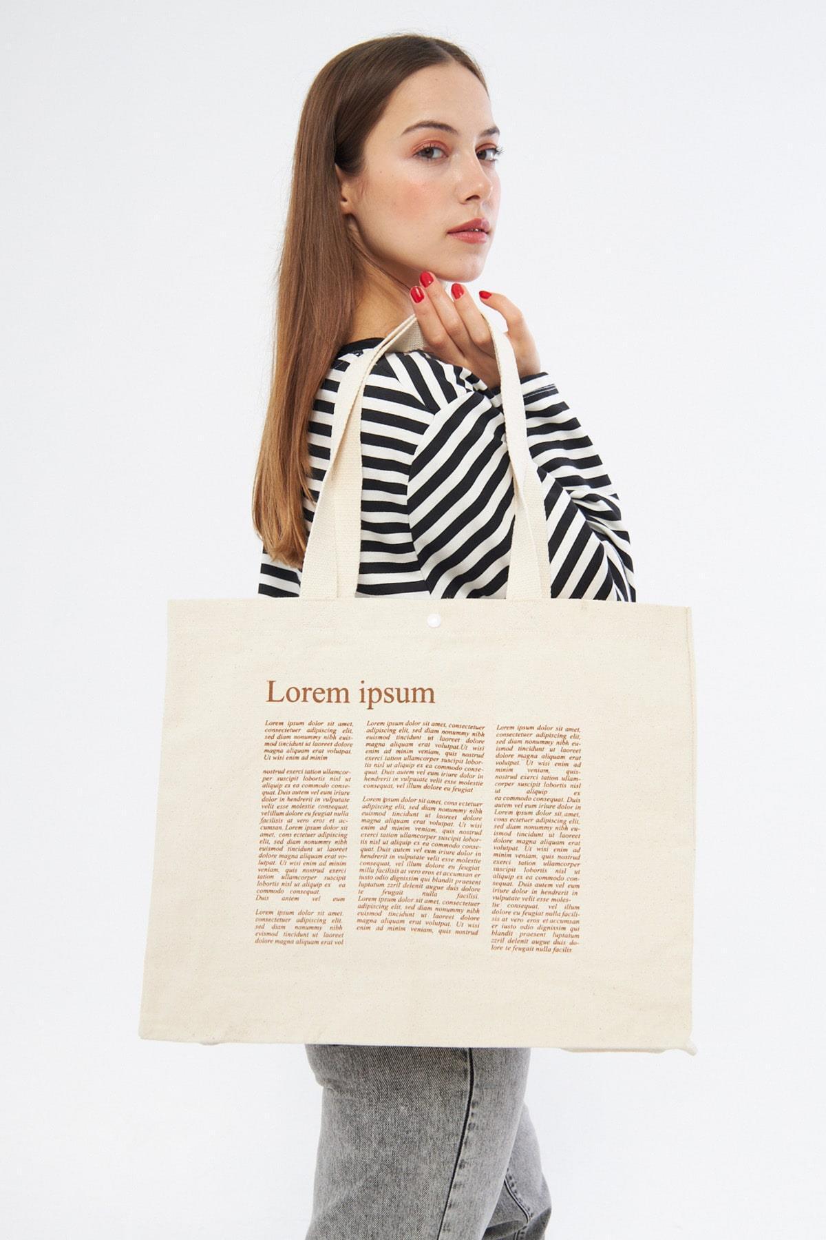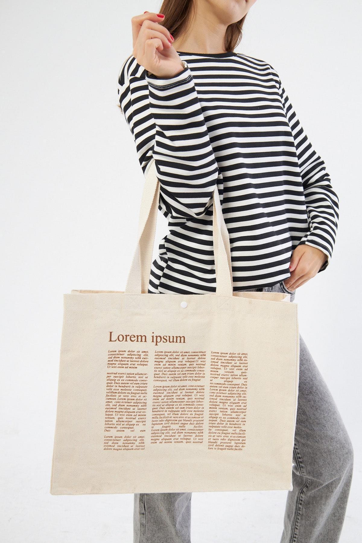 Lorem Baskılı Tam Körüklü Kanvas Çanta Lorem Baskılı Tam Körüklü Kanvas Çanta 2124 45 x 40