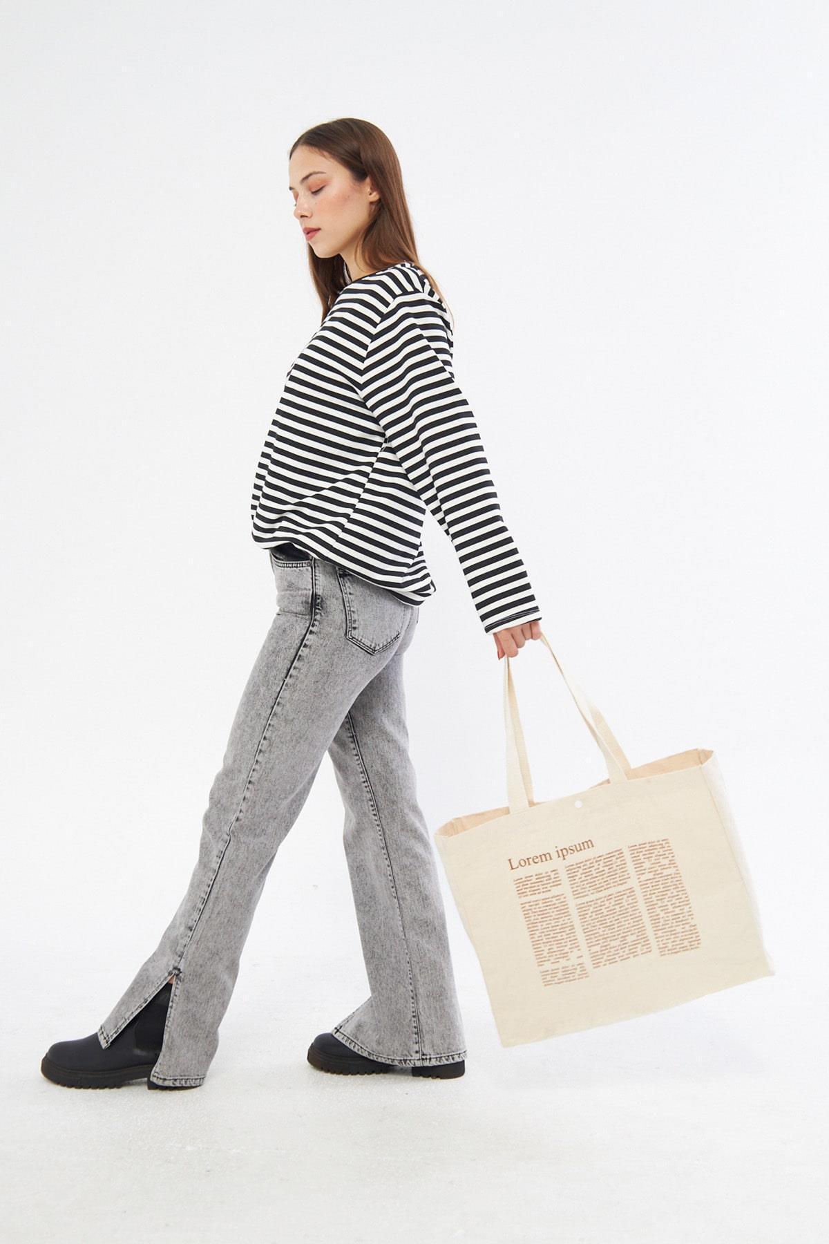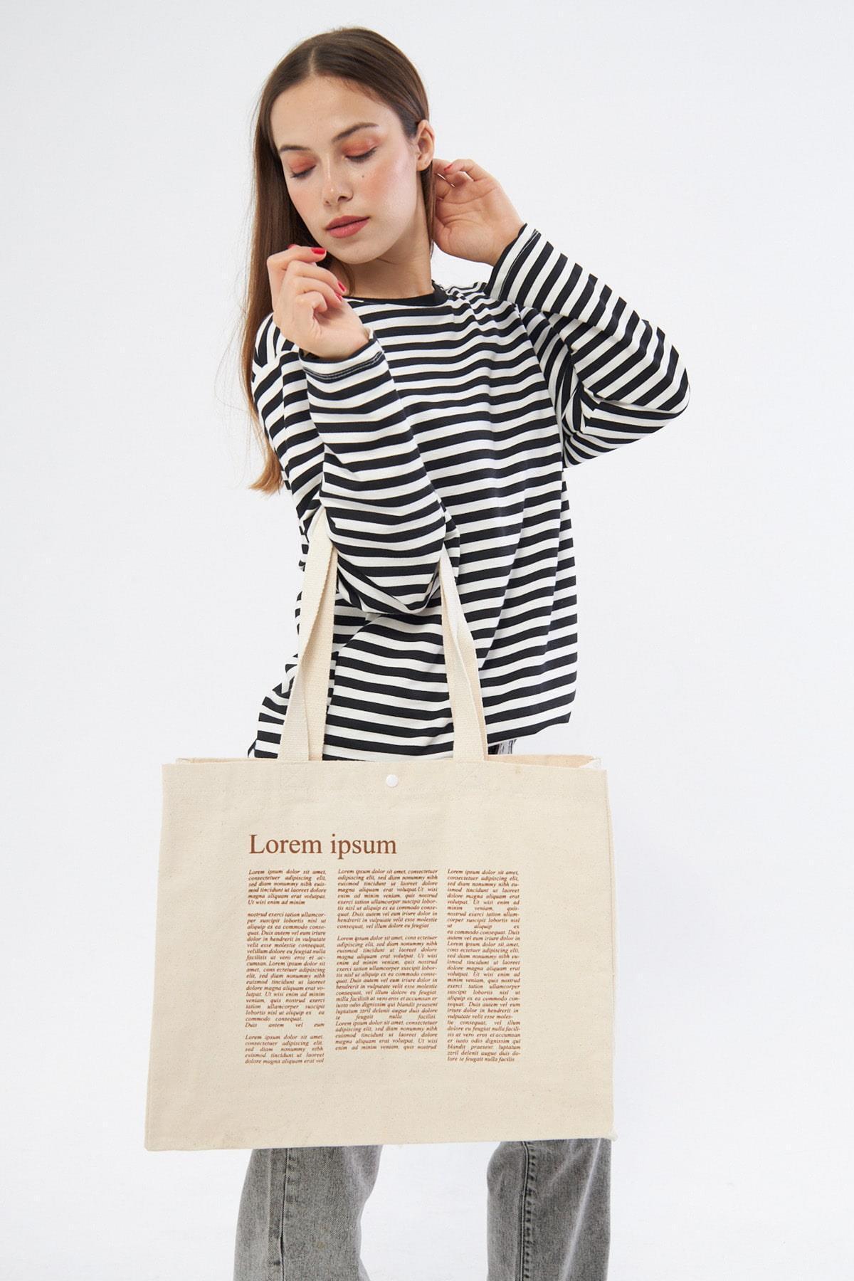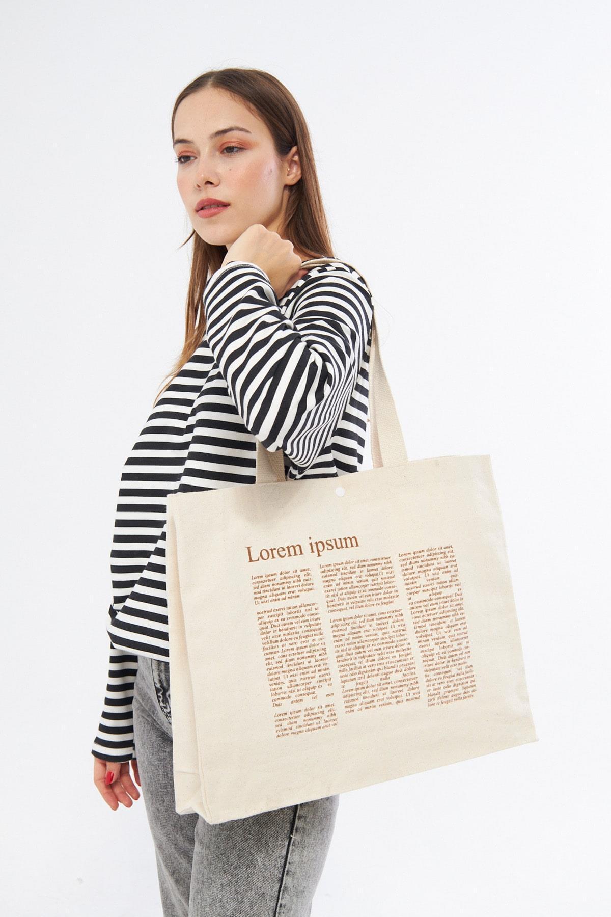 Lorem Baskılı Tam Körüklü Kanvas Çanta Lorem Baskılı Tam Körüklü Kanvas Çanta 2124 45 x 40
