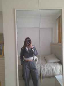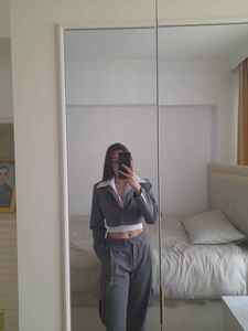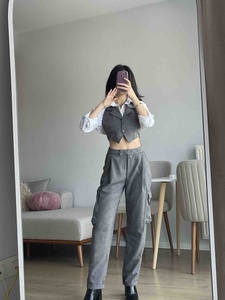 Yüksek Bel Çizgili Kargo Cep Kira Pantolon Gri Yüksek Bel Çizgili Kargo Cep Kira Pantolon Gri HLFW24-00025 L