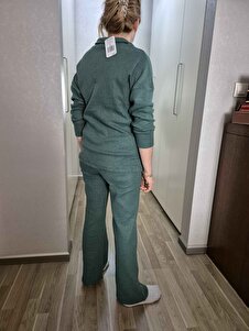 Kadın Ceviz Yeşili Polo Yaka Üst Ve Palazzo Pantolon Triko Alt Üst Takım ALC-796-001 Kadın Ceviz Yeşili Polo Yaka Üst Ve Palazzo Pantolon Triko Alt Üst Takım ALC-796-001 L