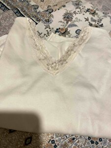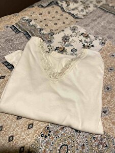 Kadın Ekru Arka Ön V Yaka Dantel Detaylı Bluz ALC-X11246 Kadın Ekru Arka Ön V Yaka Dantel Detaylı Bluz ALC-X11246 XL
